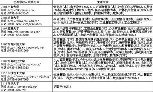 表1湖南省高等教育自学考试开考专业(本科层次)