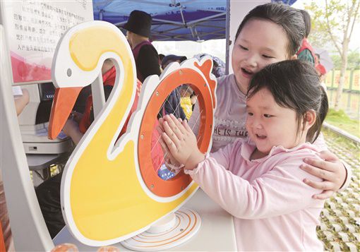 9月12日,小朋友在体验科教展品“天鹅绒触角”。当天,湘西土家族苗族自治州科协、团州委与吉首市科协、团市委联合举办的“科普惠民,与你同行”志愿服务活动走进吉首经开区易地扶贫搬迁安置区,开展科普大篷车科学仪器展,为农村留守儿童送上“科普大餐”。姚方 摄