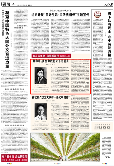 1931年,蔡和森赴香港指导广东革命工作,不幸被捕。在狱中他顽强斗争,直至英勇就义,生命定格在36岁。“匡复有吾在,与人撑巨艰。忠诚印寸心,浩然充两间”,他用自己年轻的生命,践行了当年立下的豪迈誓言,为壮丽的共产主义事业战斗到生命的最后一刻。毛泽东说:“一个共产党员应该做的,和森同志都做到了。”