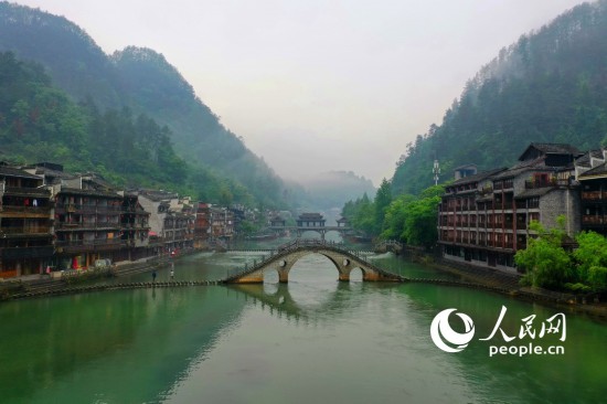 烟雨中的凤凰古城。人民网记者 王天乐摄