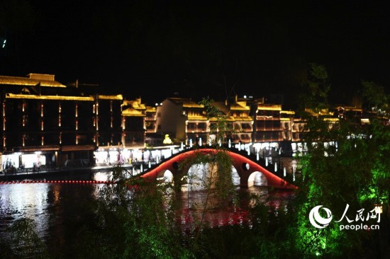 夜晚的湘西古镇。人民网记者 王天乐摄