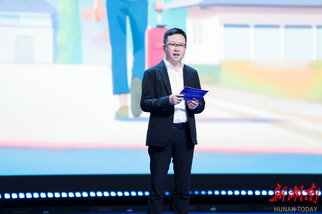 (万兴科技董事长兼总裁吴太兵发布《湘商回乡倡议书》。)