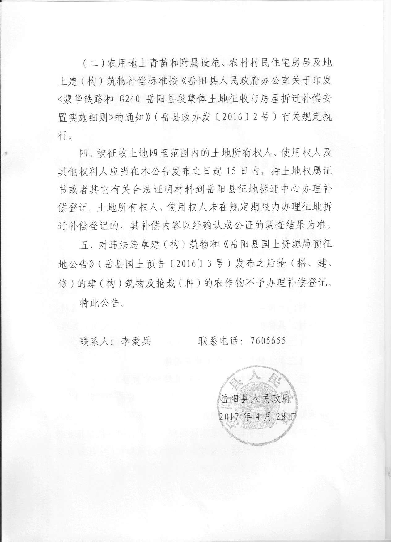 岳阳县人民政府关于G240线岳阳县城至湘阴公路工程项目(岳阳县段)征收土地的公告