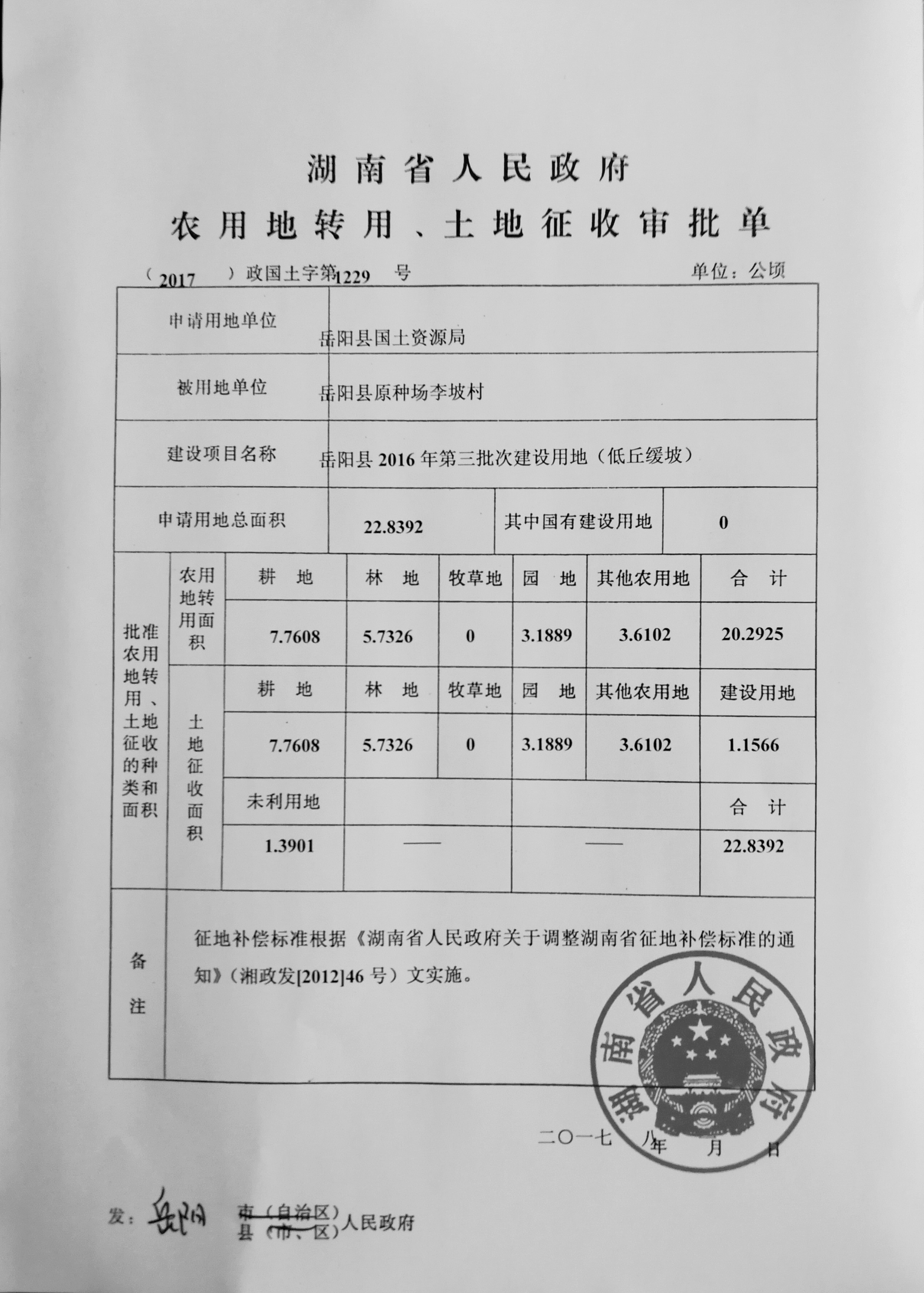 岳阳县2016年第三批次建设用地(低丘缓坡)