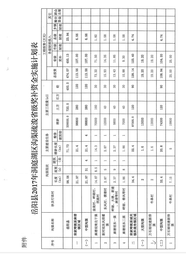 根据省水利厅《关于做好2017-洞庭湖区沟渠塘坝清淤增蓄专项行动实施计划编制下达工作的通知》(湘水洞管[2017]14号)的要求,及《湖南省财政厅关于下达2017-洞庭湖区沟渠疏浚第一批省级奖补资金的通知》(湘财建指【2017】126号)等文件精神,我们编制了《岳阳县2017-洞庭湖区沟渠疏浚省级奖补资金实施计划表》,并经岳阳县人民政府《关于下达岳阳县2017洞庭湖区沟渠疏浚省级奖补资金实施计划的通知》(岳县政函[2017]107号)文件下达了实施计划。现将我县2017-洞庭湖区沟渠疏浚省级奖补资金实施计划表予以公示。