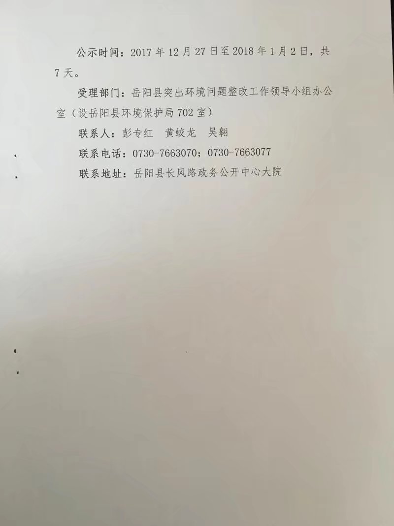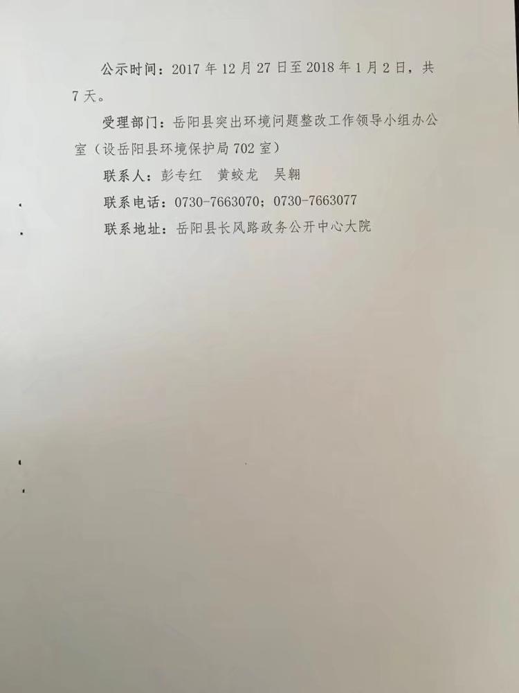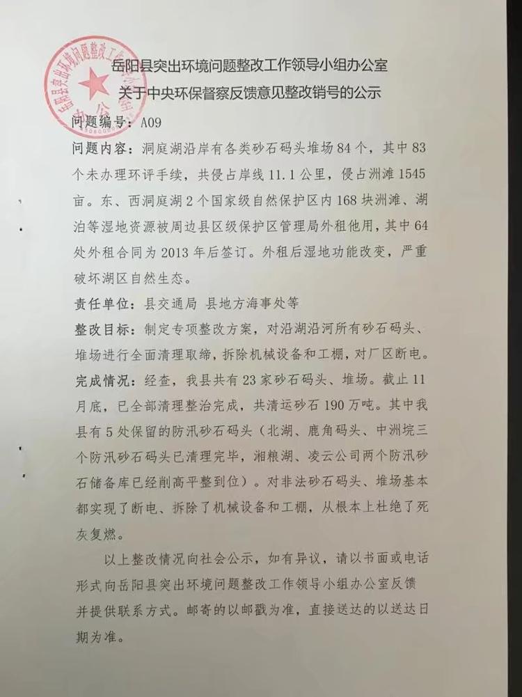岳阳县突出环境问题整改工作领导小组办公室关于中央环保督察反馈意见整改销号的公示A09