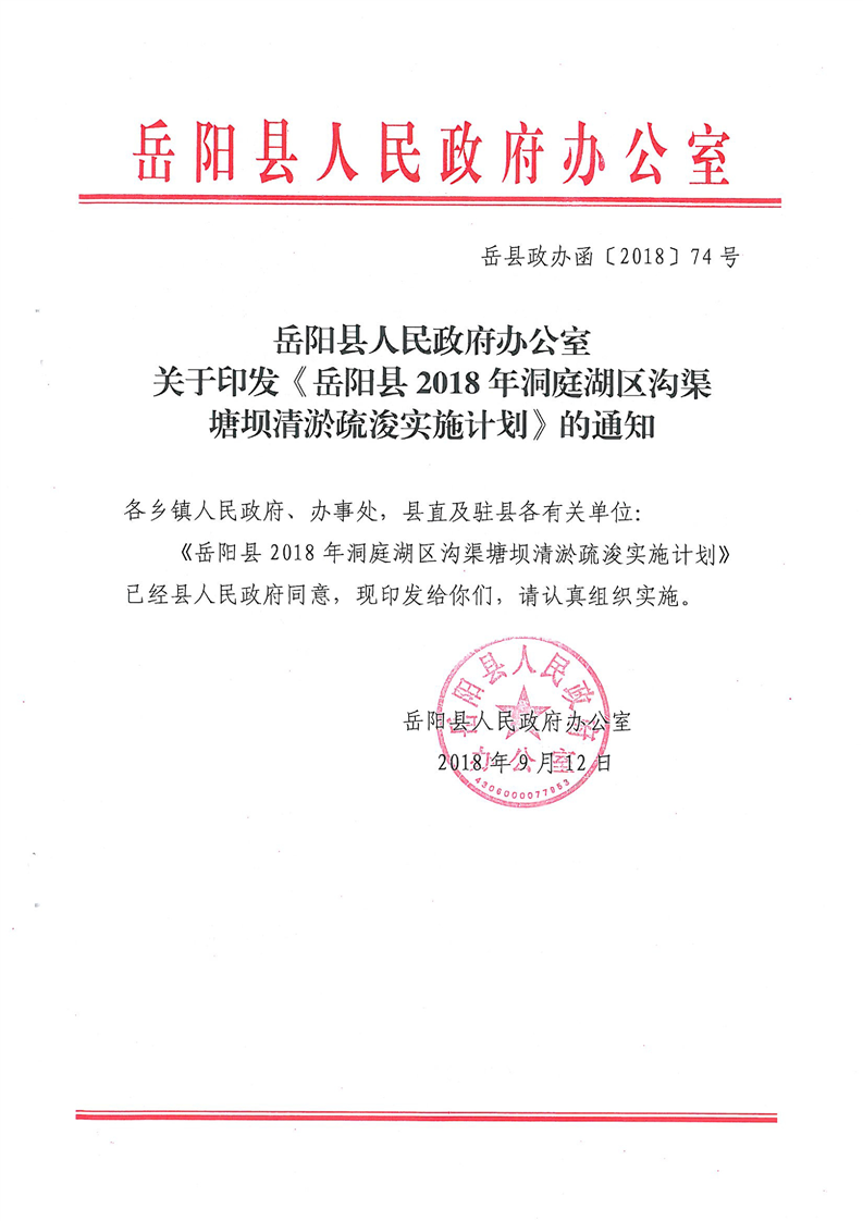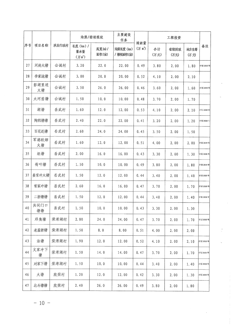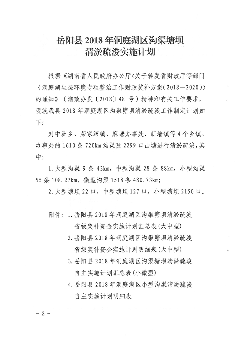 岳阳县2018年洞庭湖区沟渠塘坝清淤疏浚实施计划