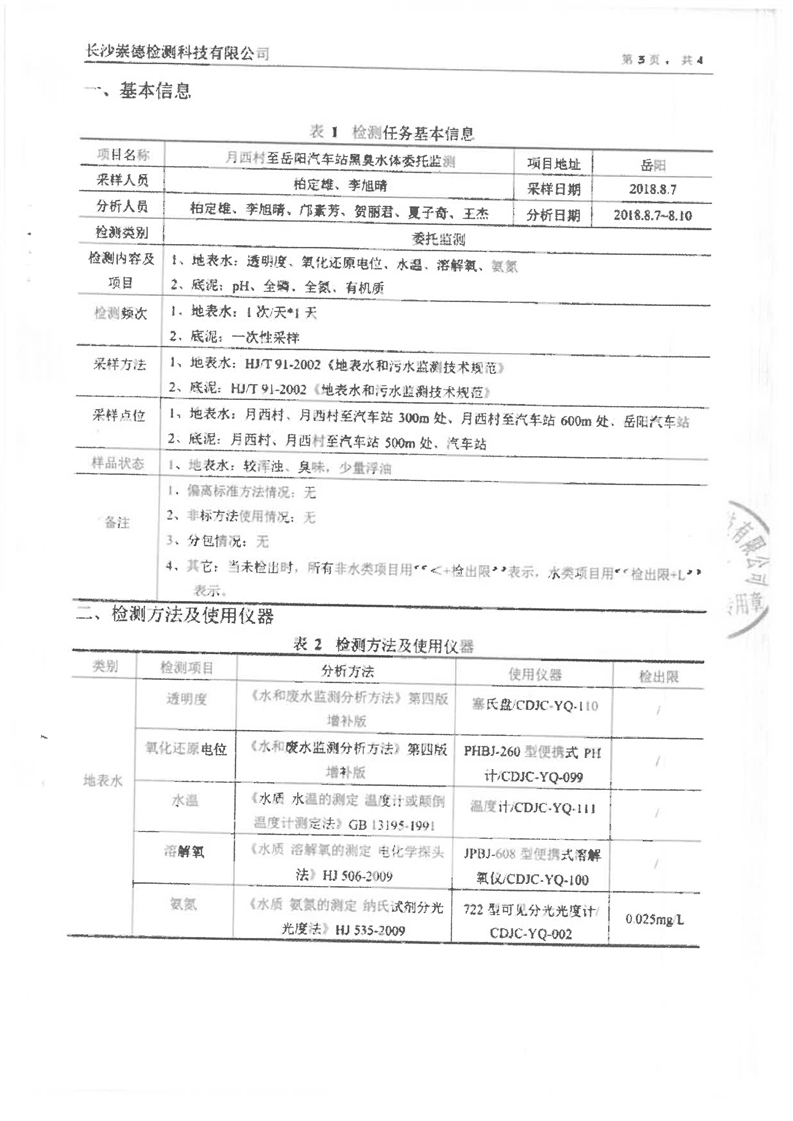 城南河水环境综合治理水质检测报告