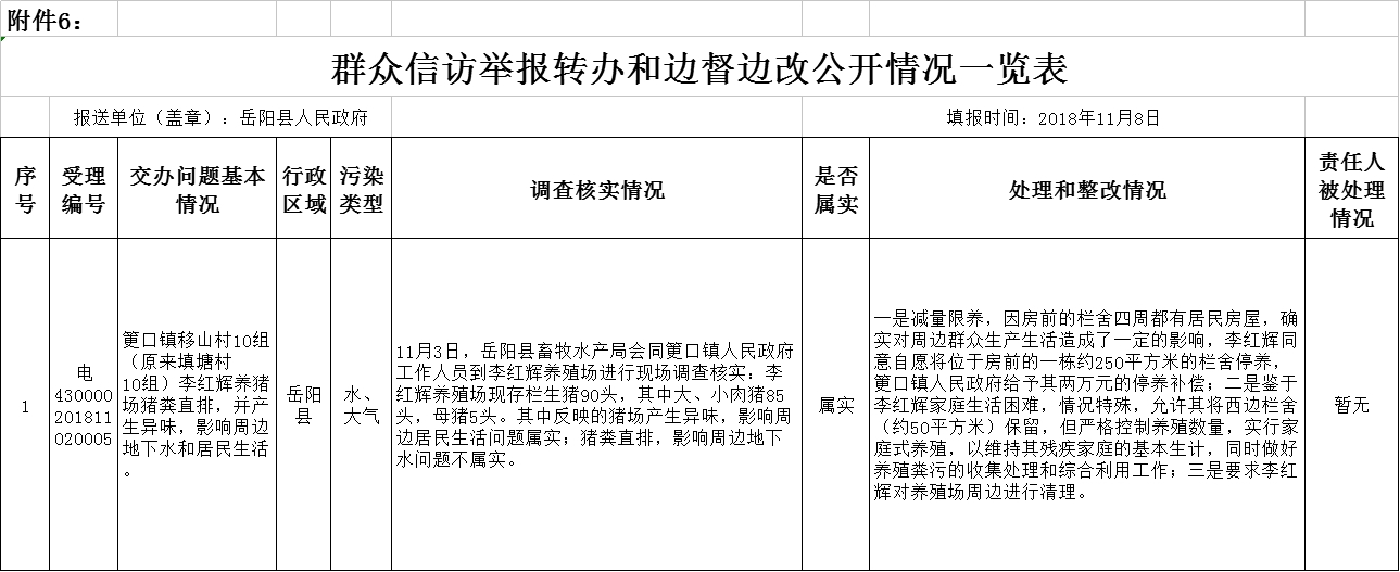 中央生态环境保护督察“回头看”群众信访举报转办和边督边改公开情况一览表 (2018年11月8日)