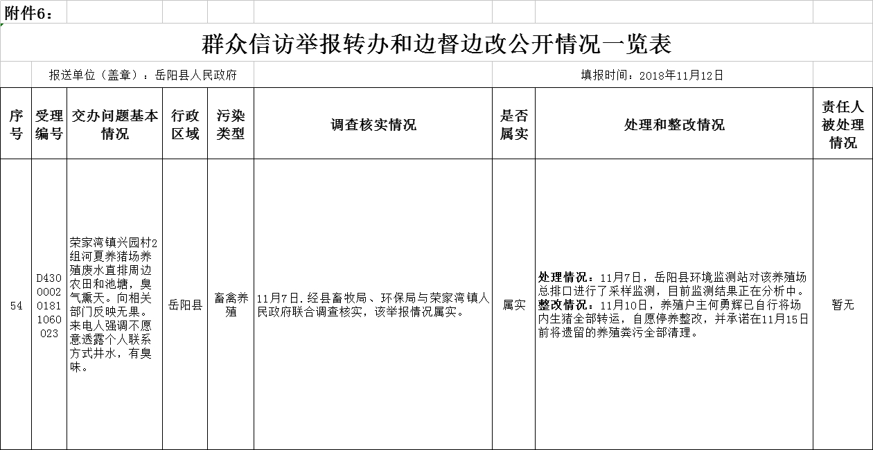 中央生态环境保护督察“回头看”群众信访举报转办和边督边改公开情况一览表 (2018年11月12日)