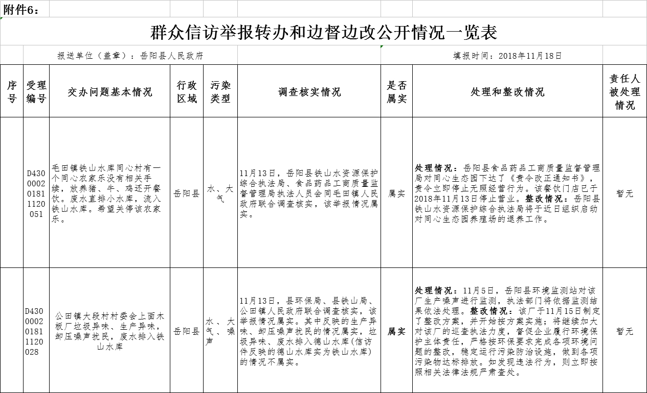中央生态环境保护督察“回头看”群众信访举报转办和边督边改公开情况一览表 (2018年11月18日)