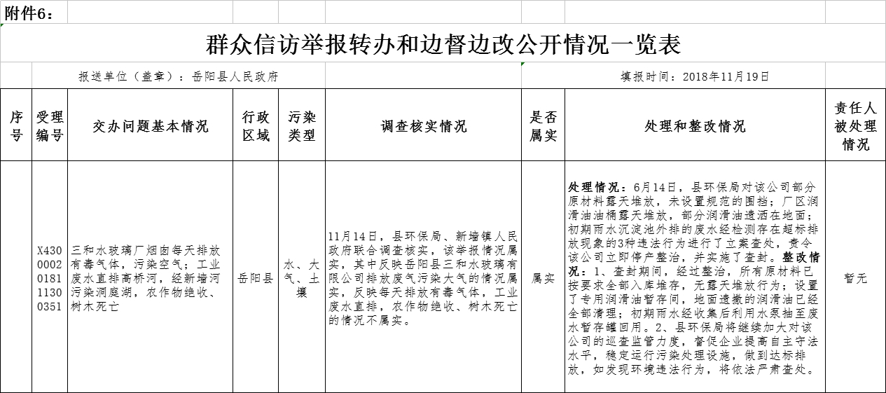 中央生态环境保护督察“回头看”群众信访举报转办和边督边改公开情况一览表 (2018年11月19日)
