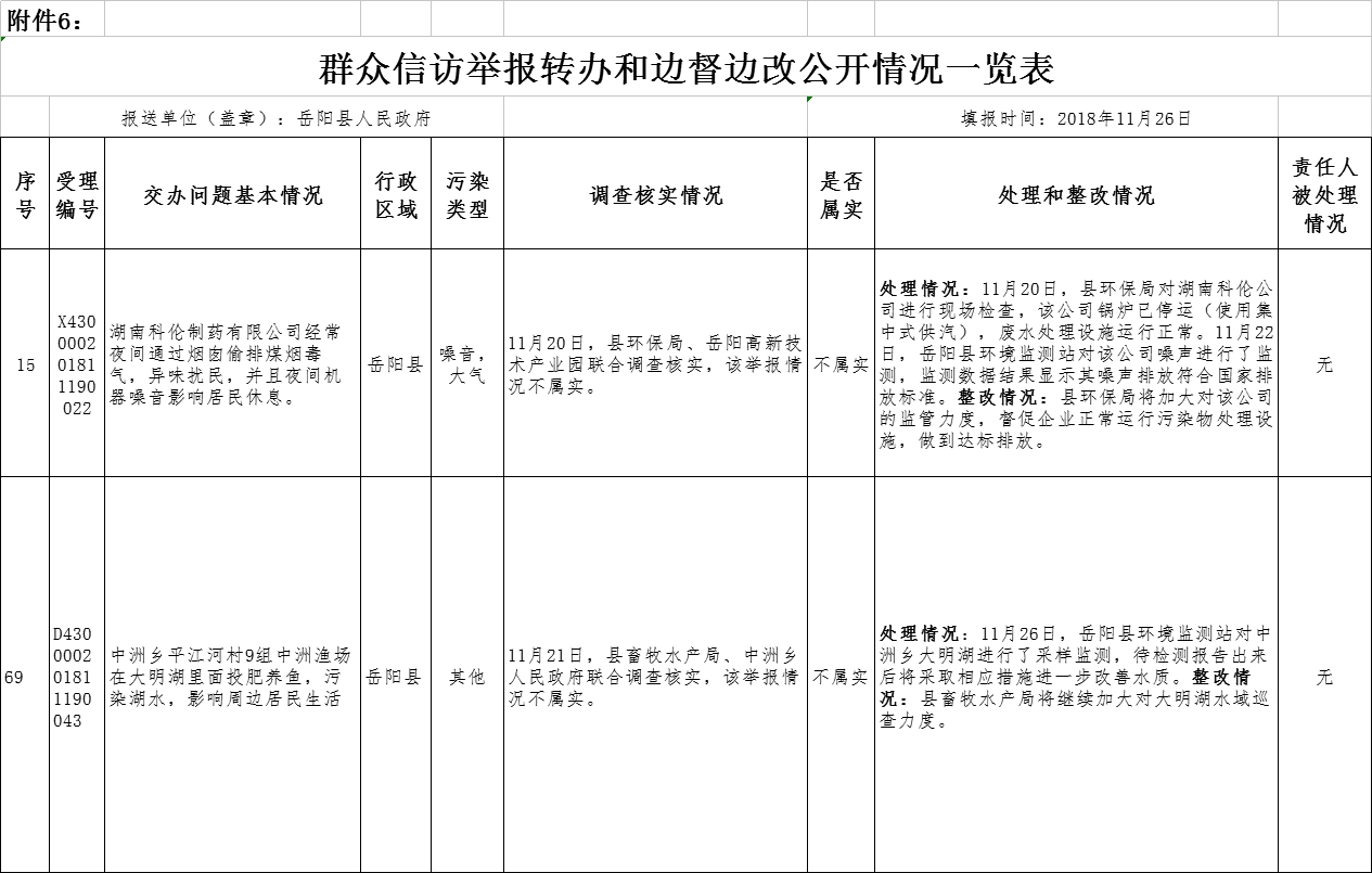 中央生态环境保护督察“回头看”群众信访举报转办和边督边改公开情况一览表 (2018年11月25日)