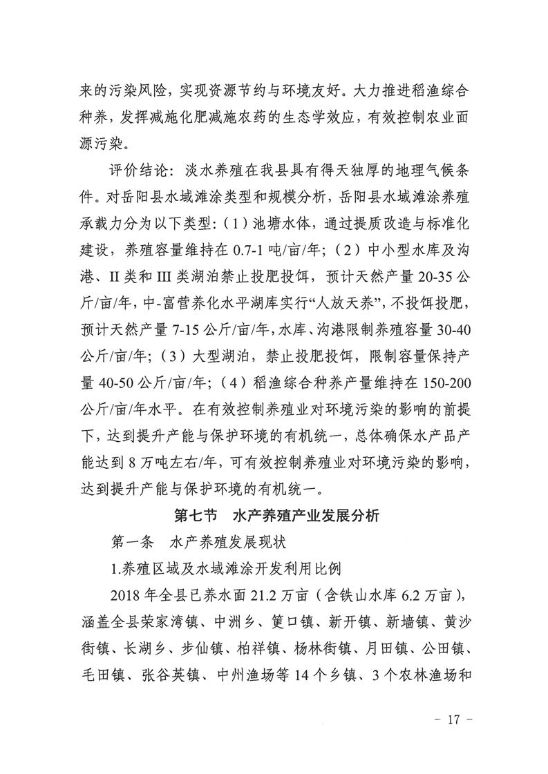 岳阳县养殖水域滩涂规划(2018—2030年)