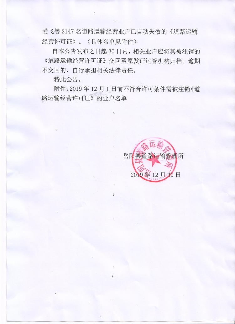 2019年12月1日前不符合许可条件需被注销《道路运输经营许可证》的业户名单.xls