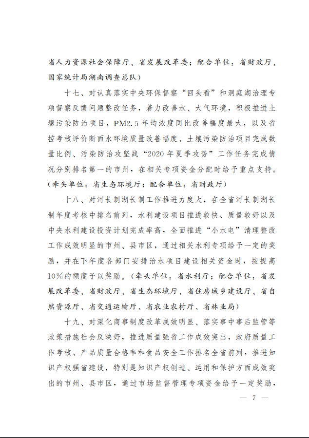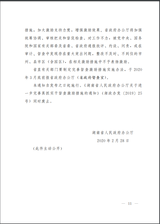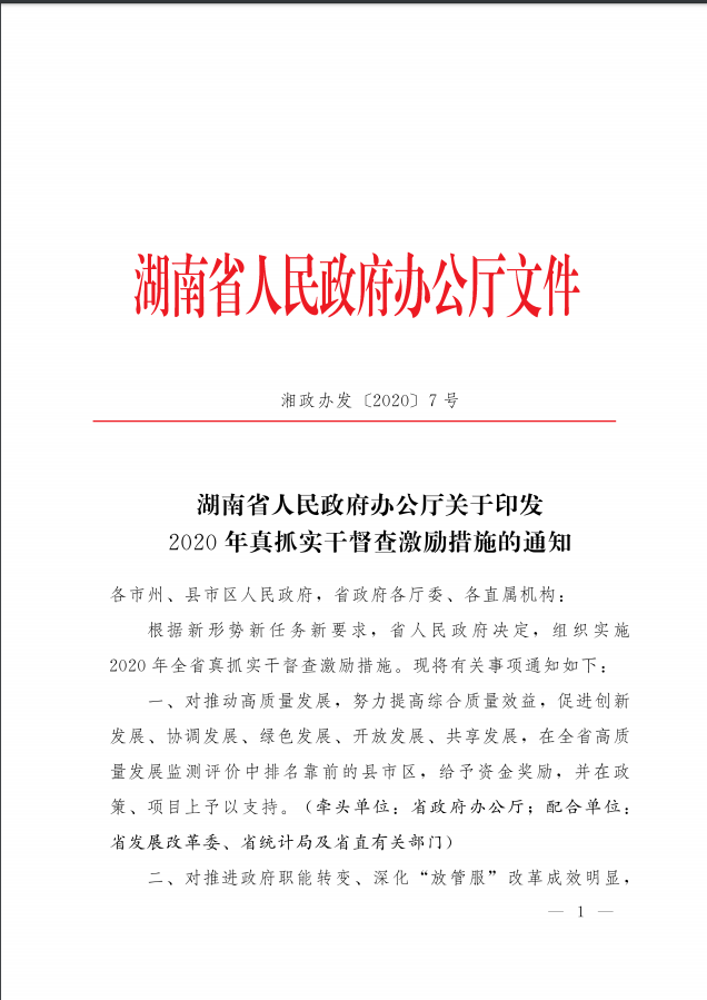 湖南省人民政府办公厅关于印发2020年真抓实干督查激励措施的通知
