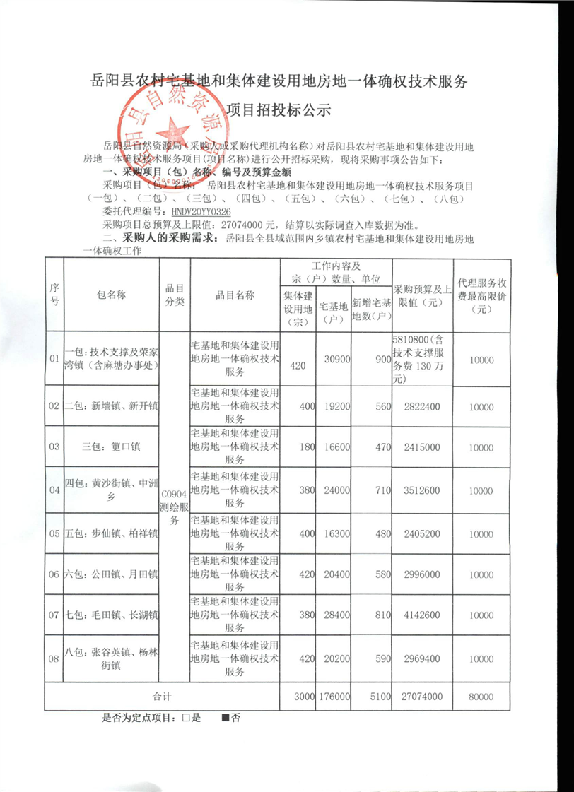 岳阳县农村宅基地和集体建设用地房地一体确权技术服务项目招投标公示