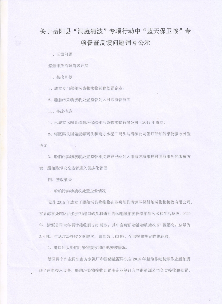 关于岳阳县“洞庭清波”专项行动中“蓝天保卫战”专项督查反馈问题销号公示