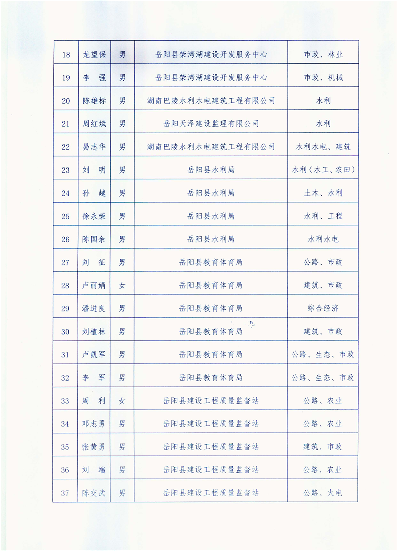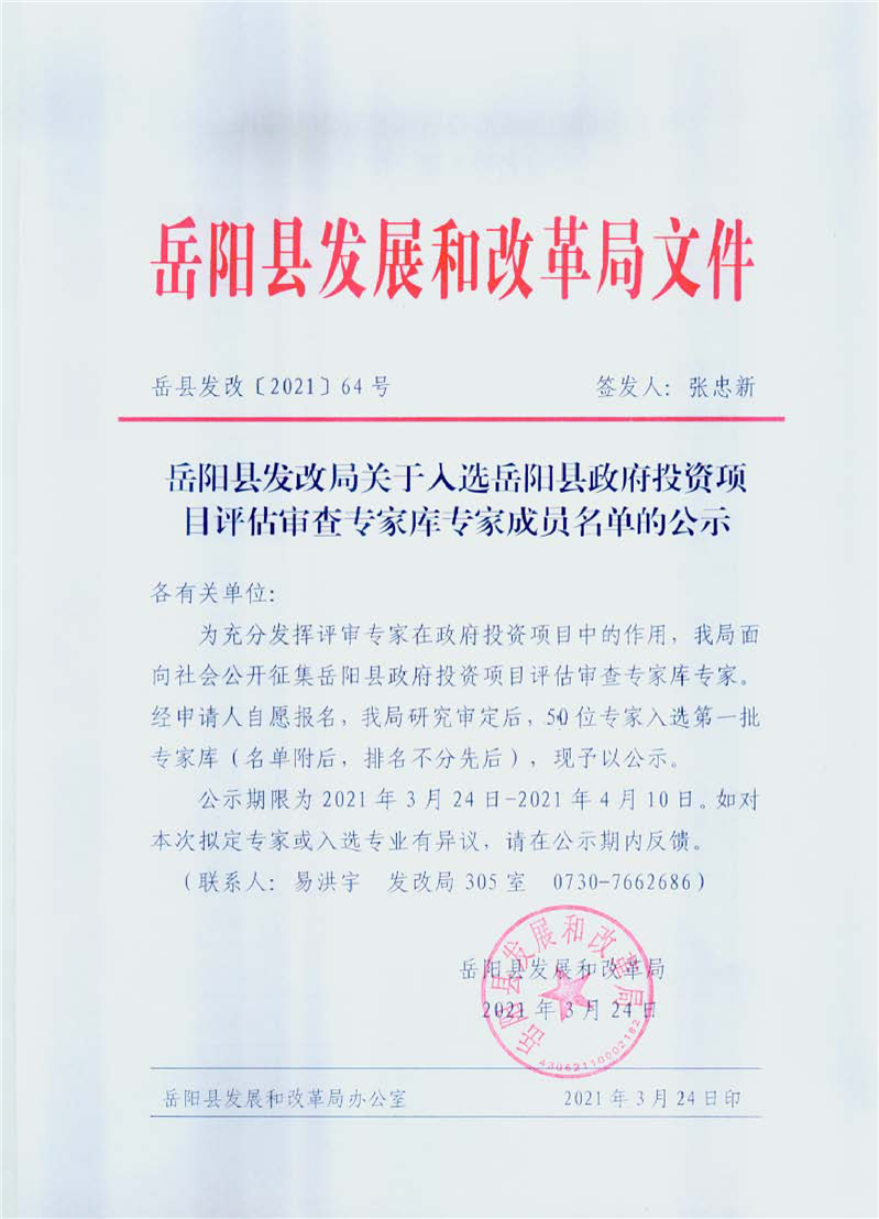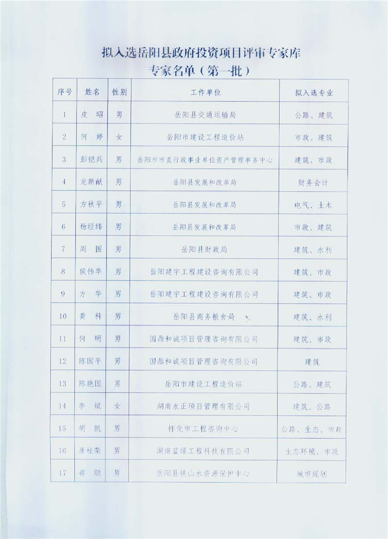 关于入选岳阳县政府投资项目评估审查专家成员名单的公示