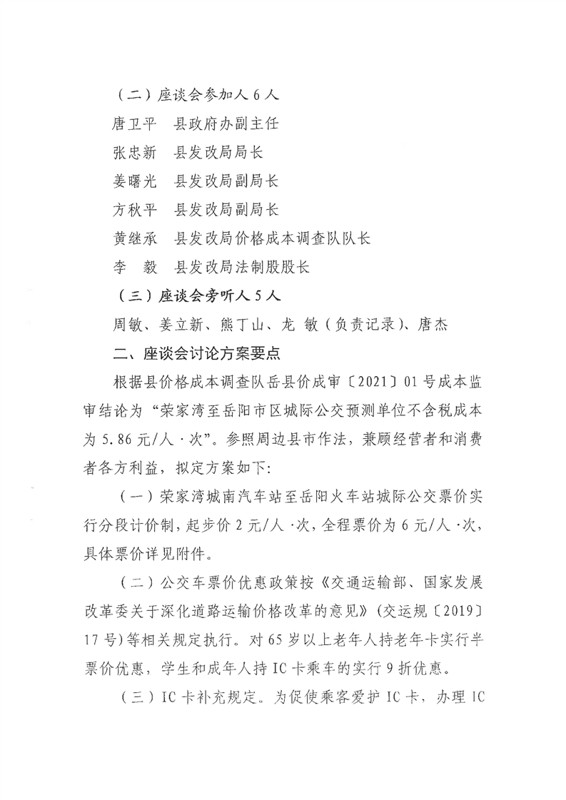 关于召开荣家湾至岳阳市区城际公交票价核定座谈会的公告