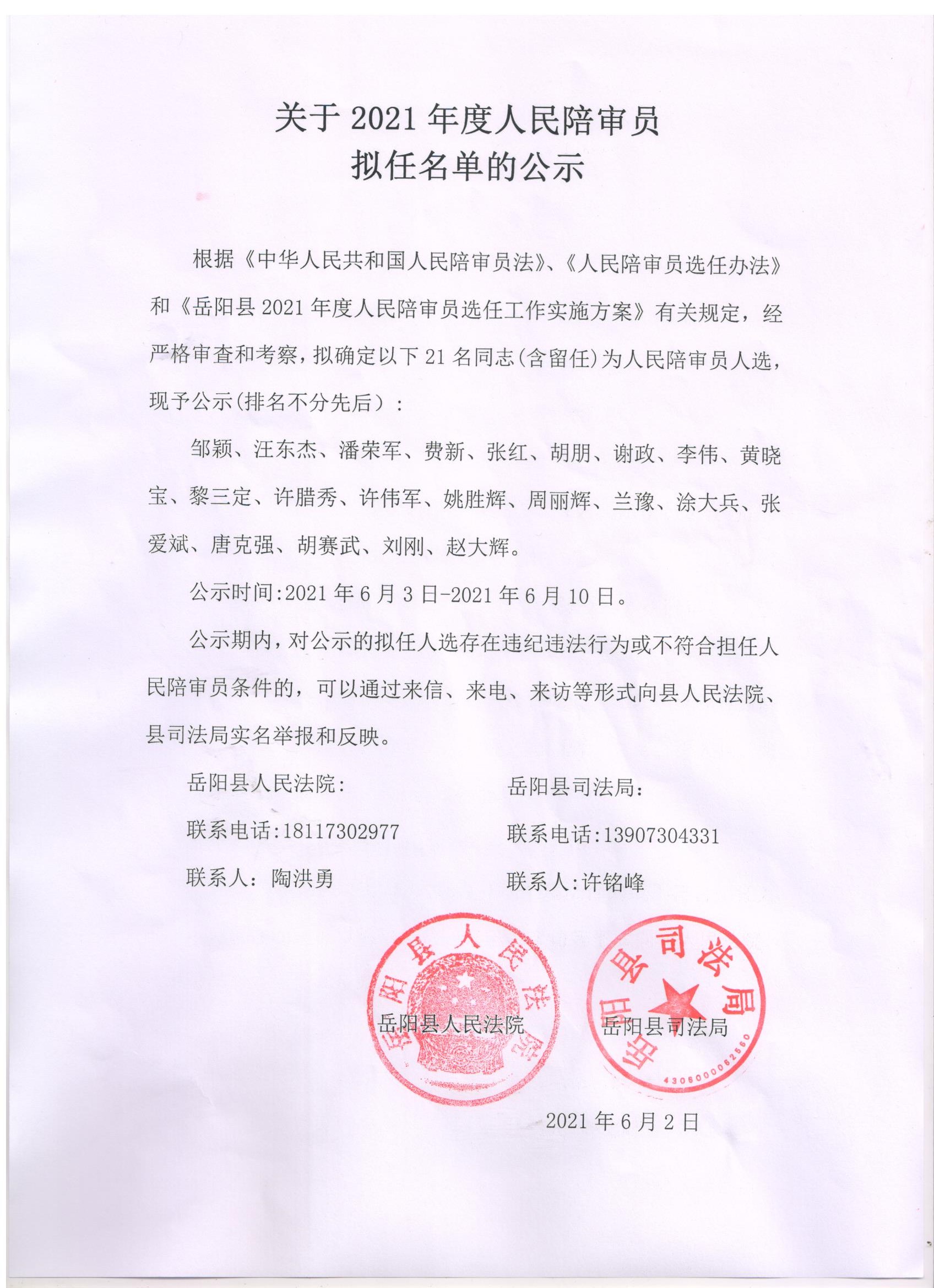 关于2021年度人民陪审员拟任名单的公示