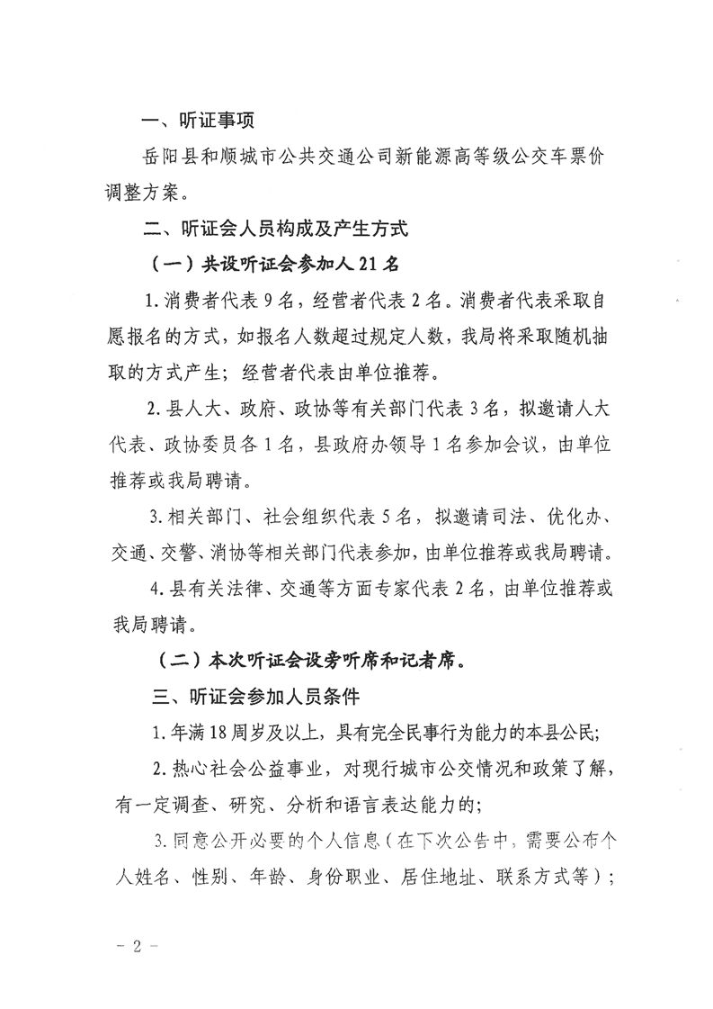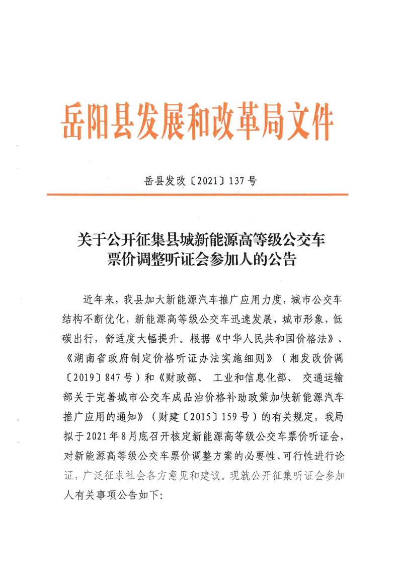 关于公开征集县城新能源高等级公交车票价调整听证会参加人的公告