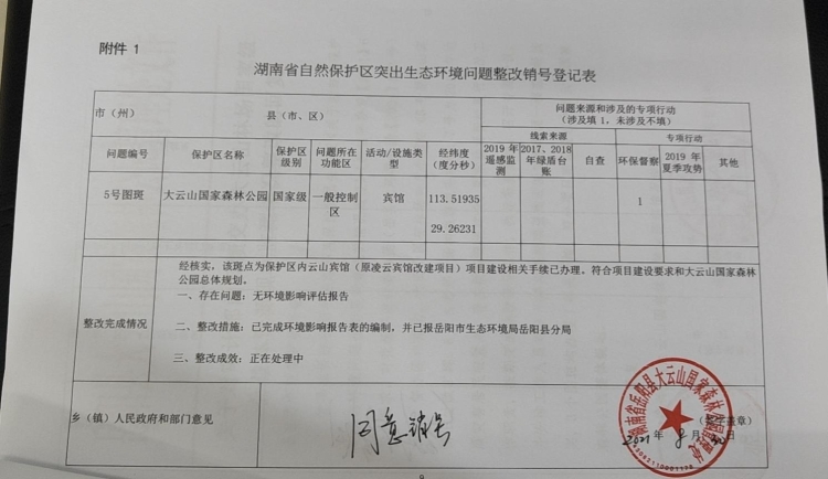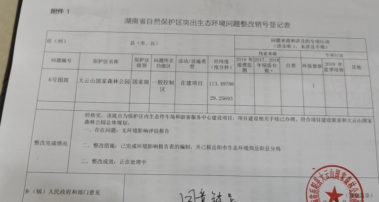 岳阳县大云山国家森林公园管理处关于湖南省自然保护区突出整体环境问题整改情况的公示