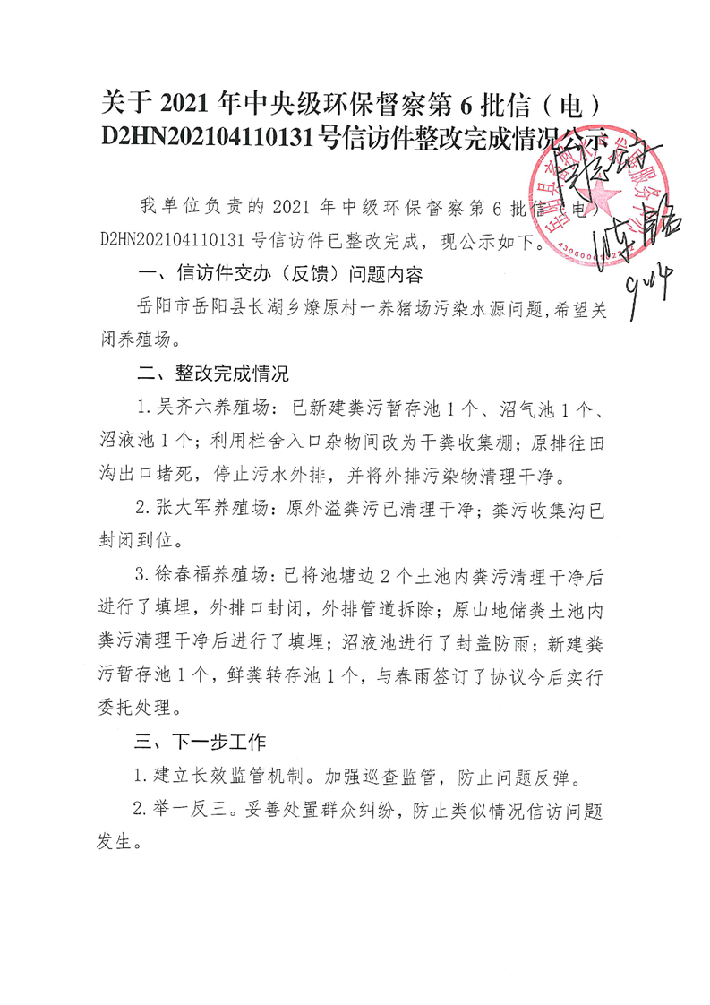 第6批信(电)整改完成情况公示