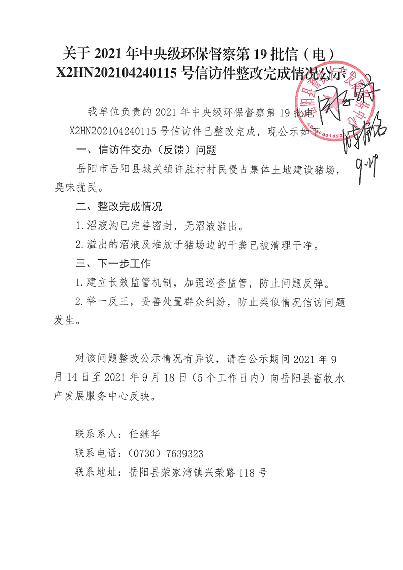 第19批信(电)整改完成情况公示2