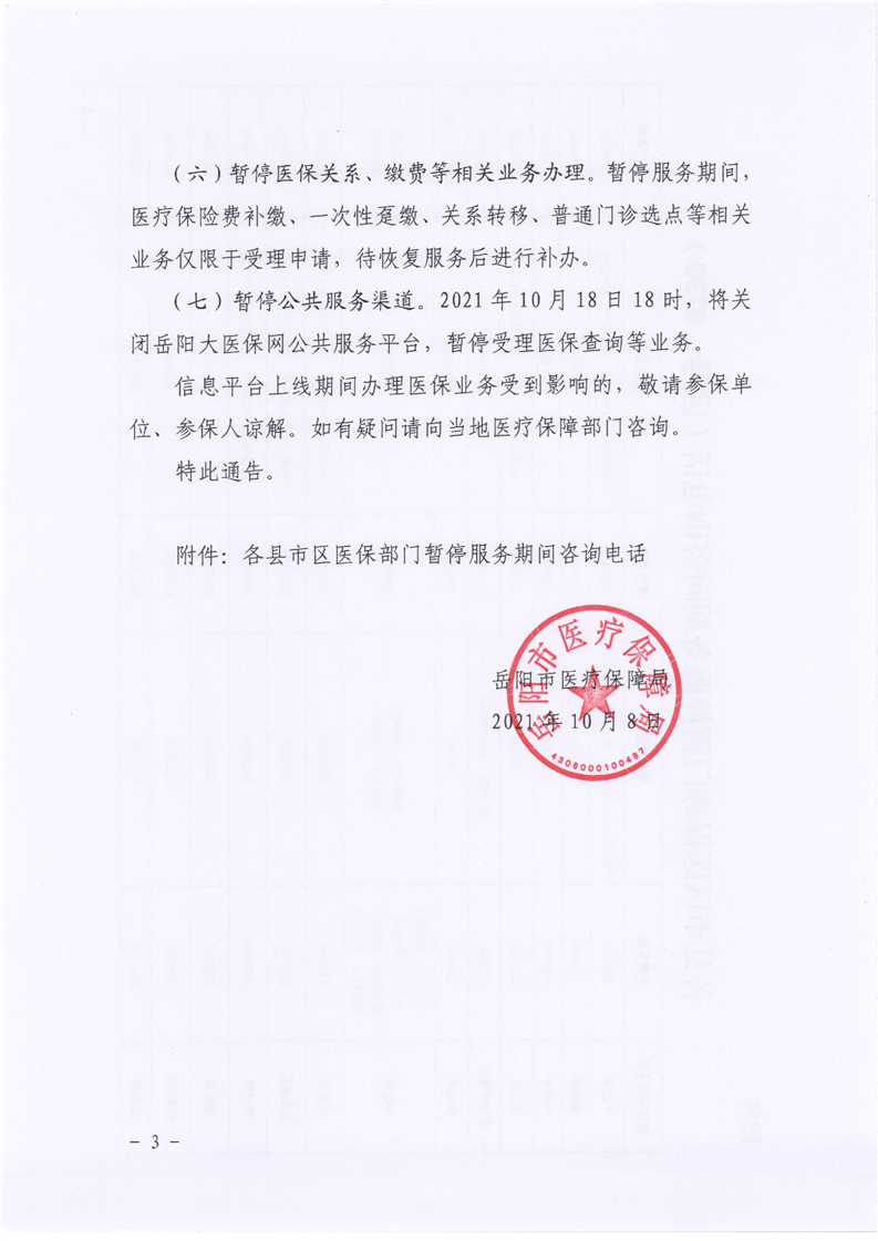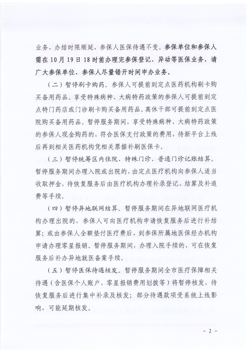 关于医疗保障信息平台停机期间暂停医保服务的通告