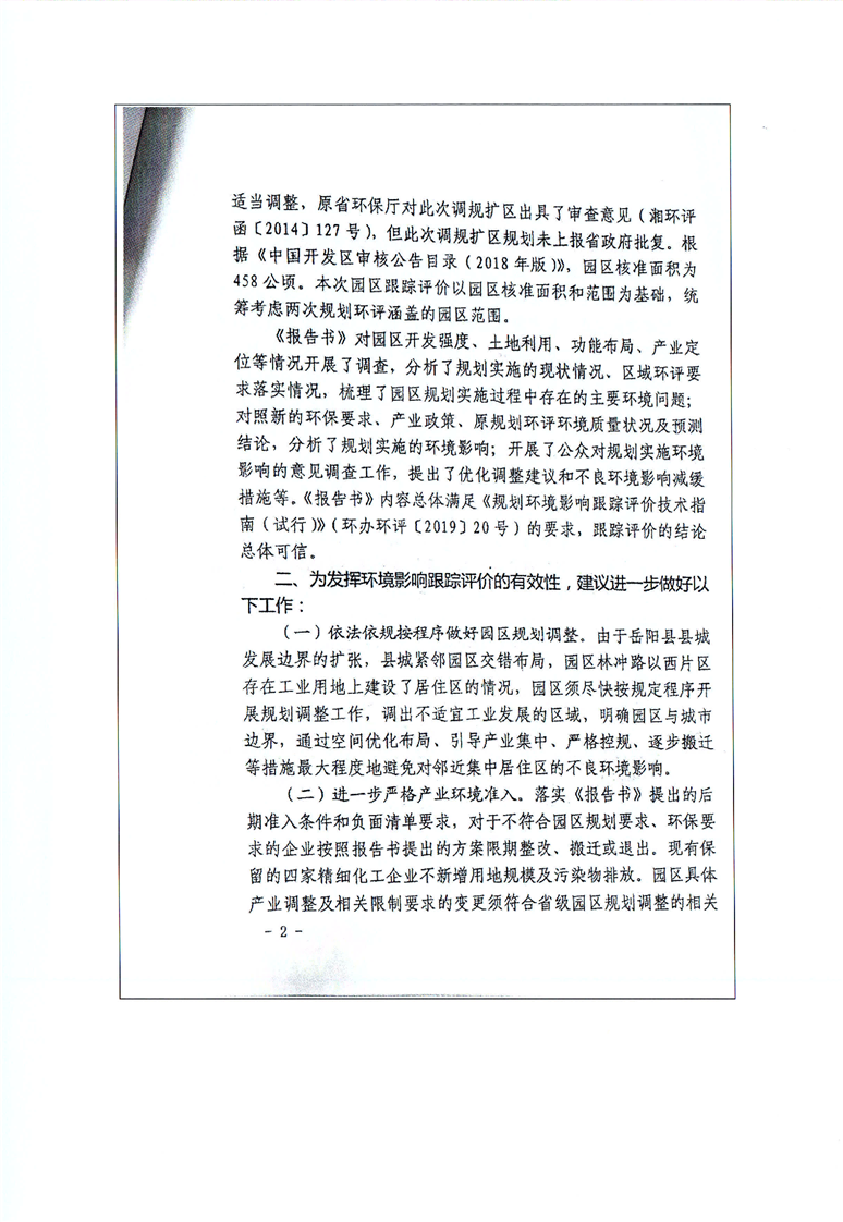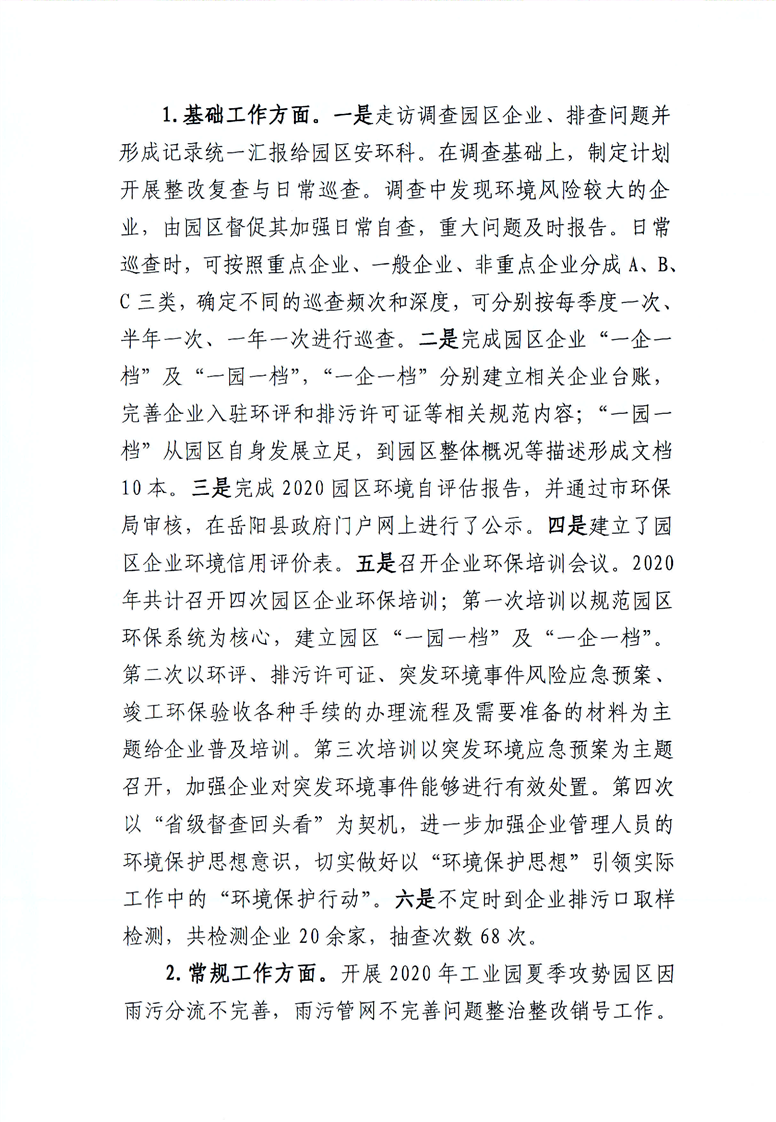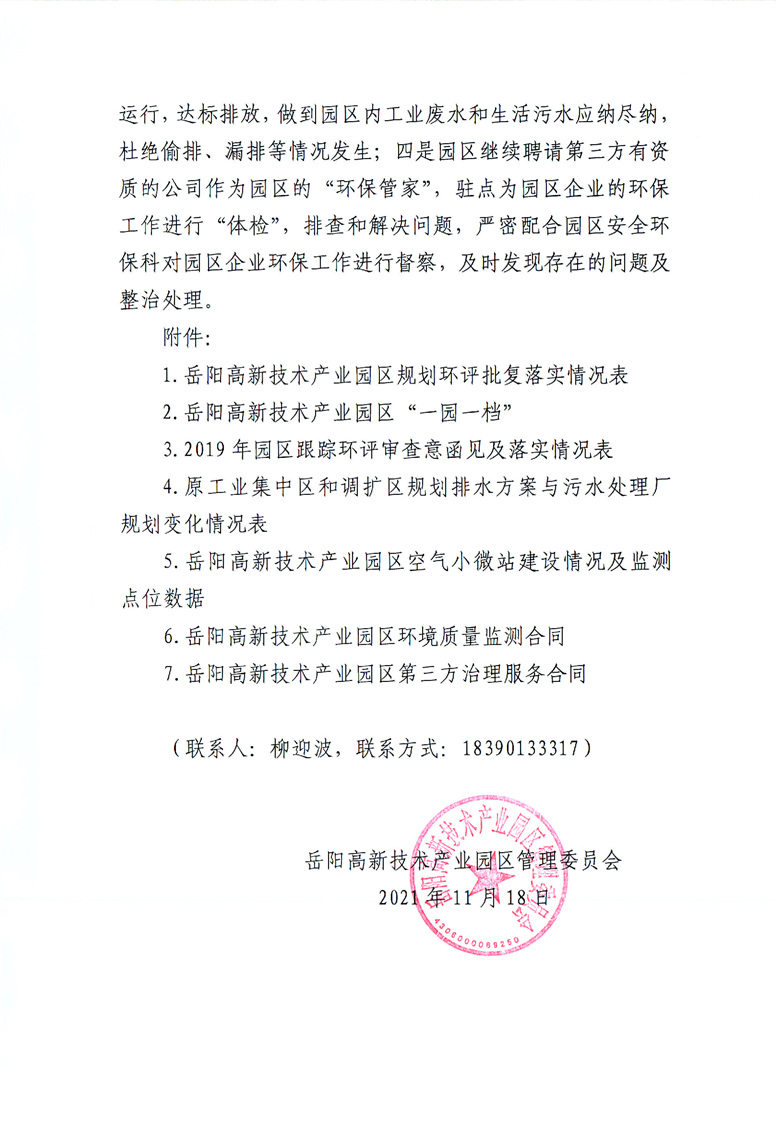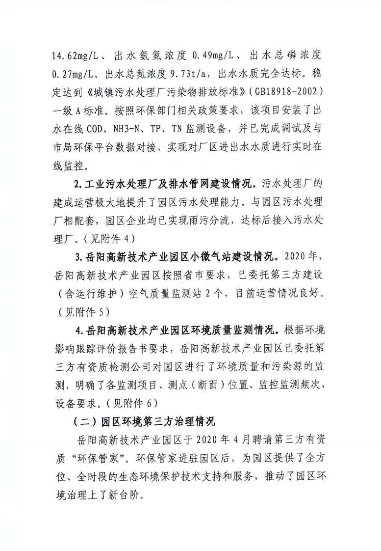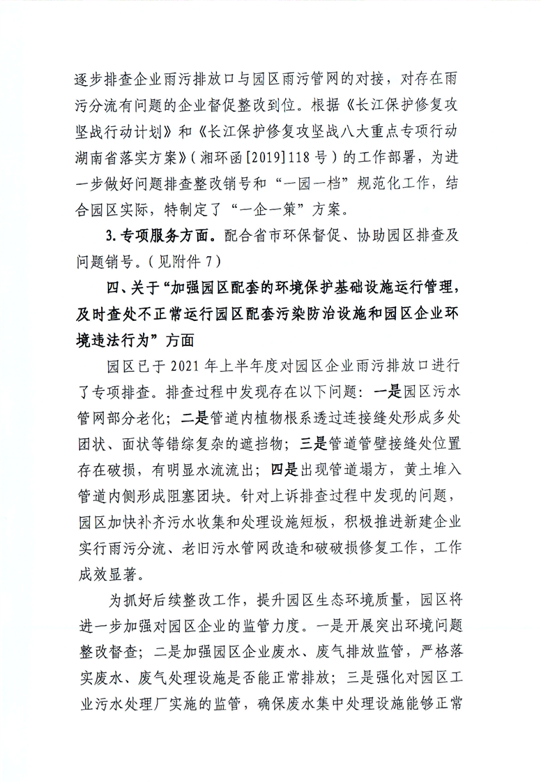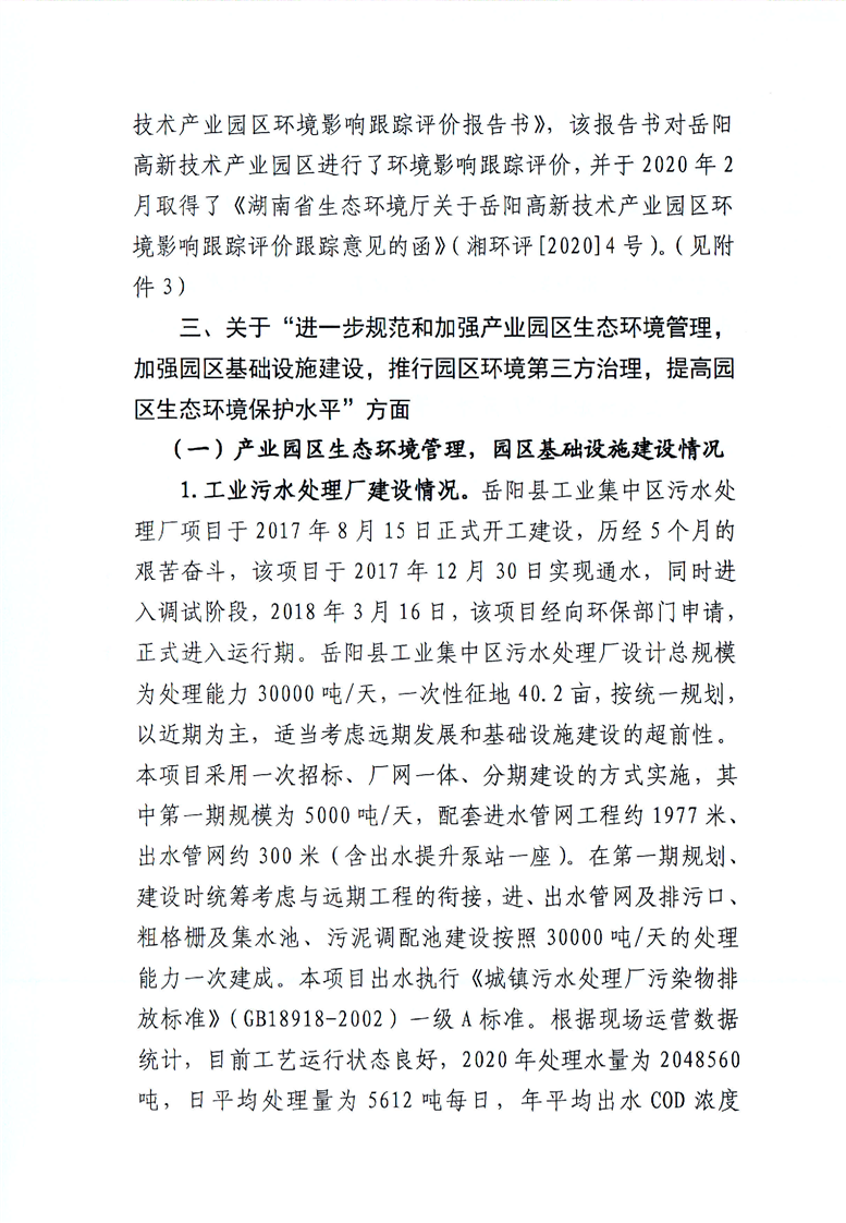 岳阳高新技术产业园区管理委员会关于第二轮中央生态环境保护督察反馈问题整改进展情况汇报