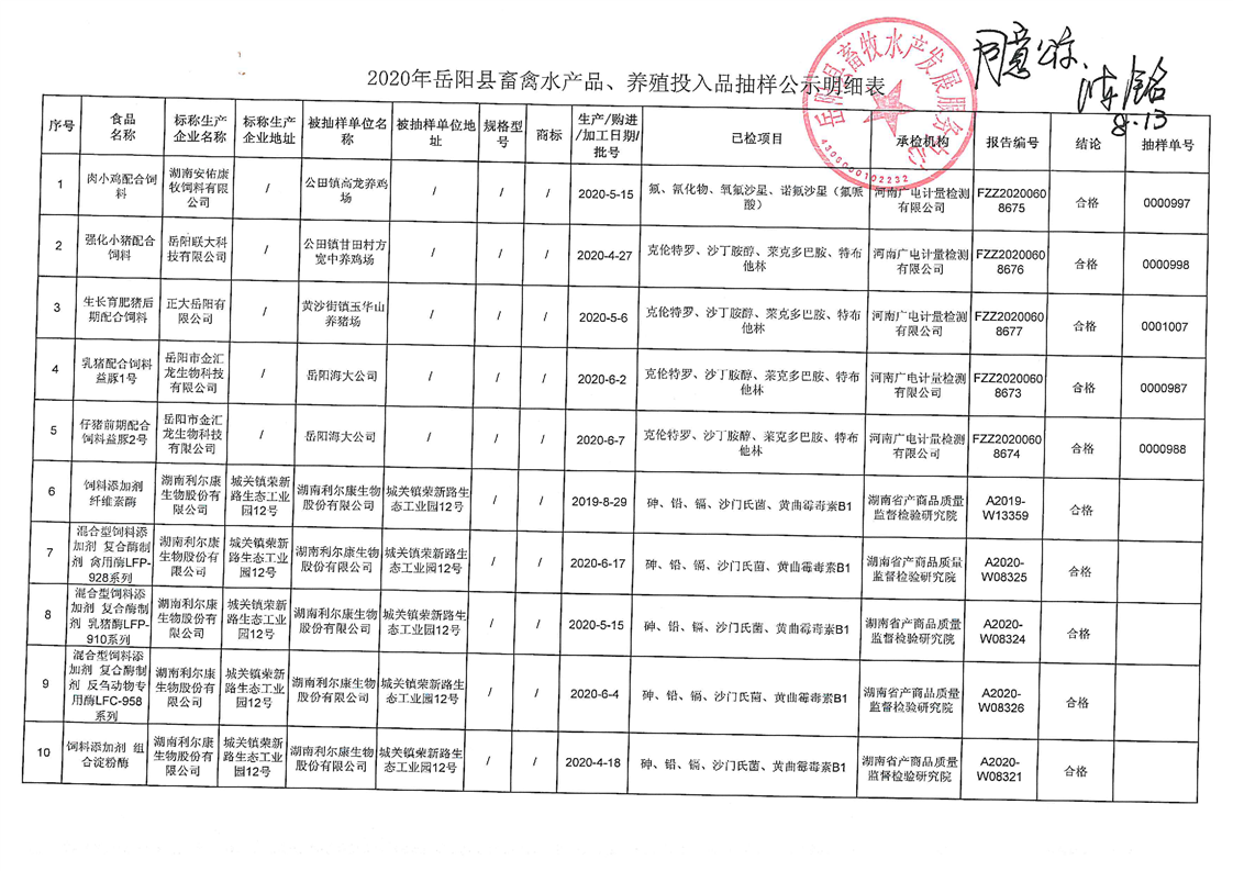 2021年度畜禽水产品、养殖投入品定量检测信息公示明细表