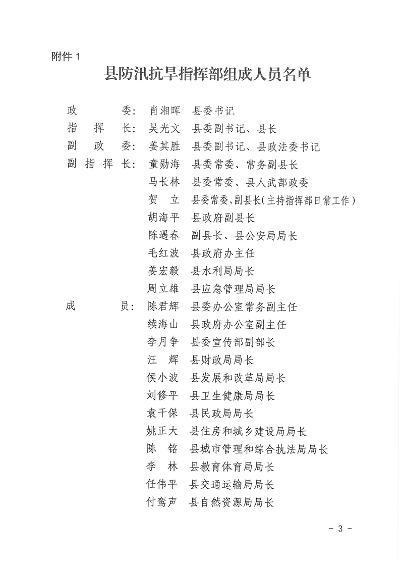 关于调整县防汛抗旱指挥部成员和防汛责任人员的通知