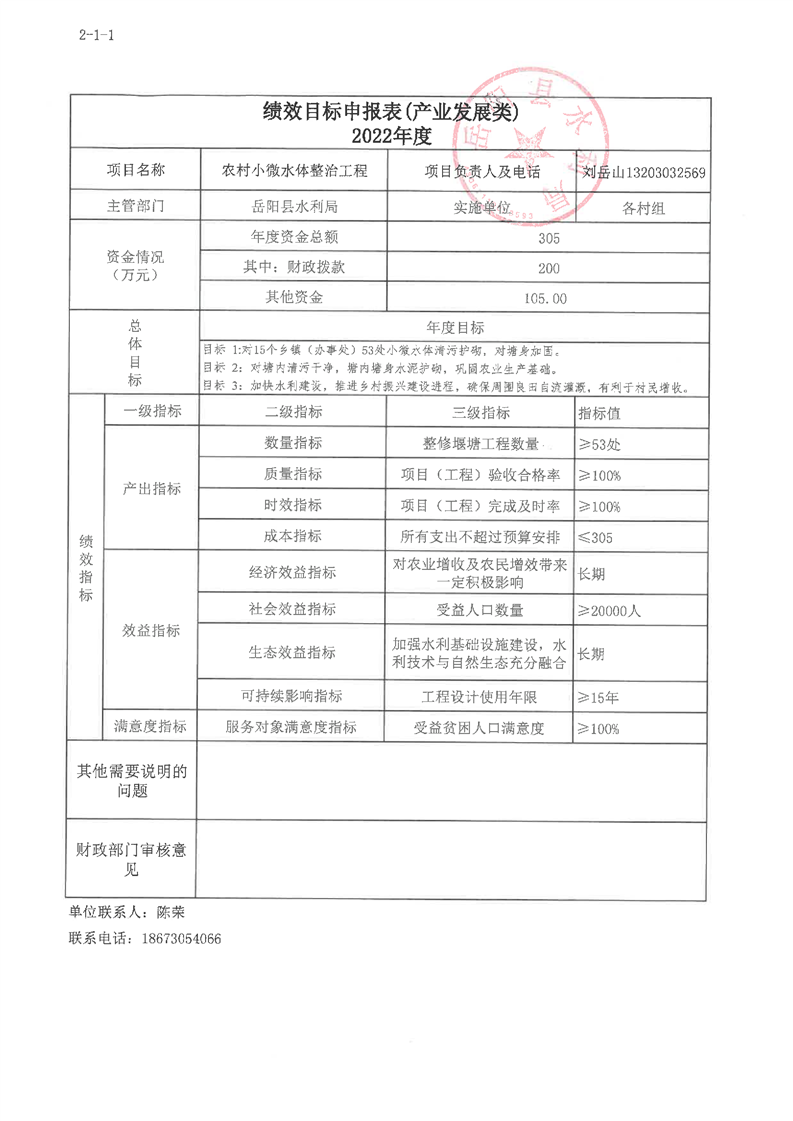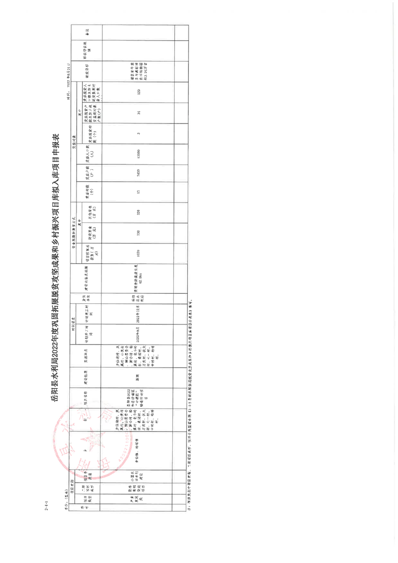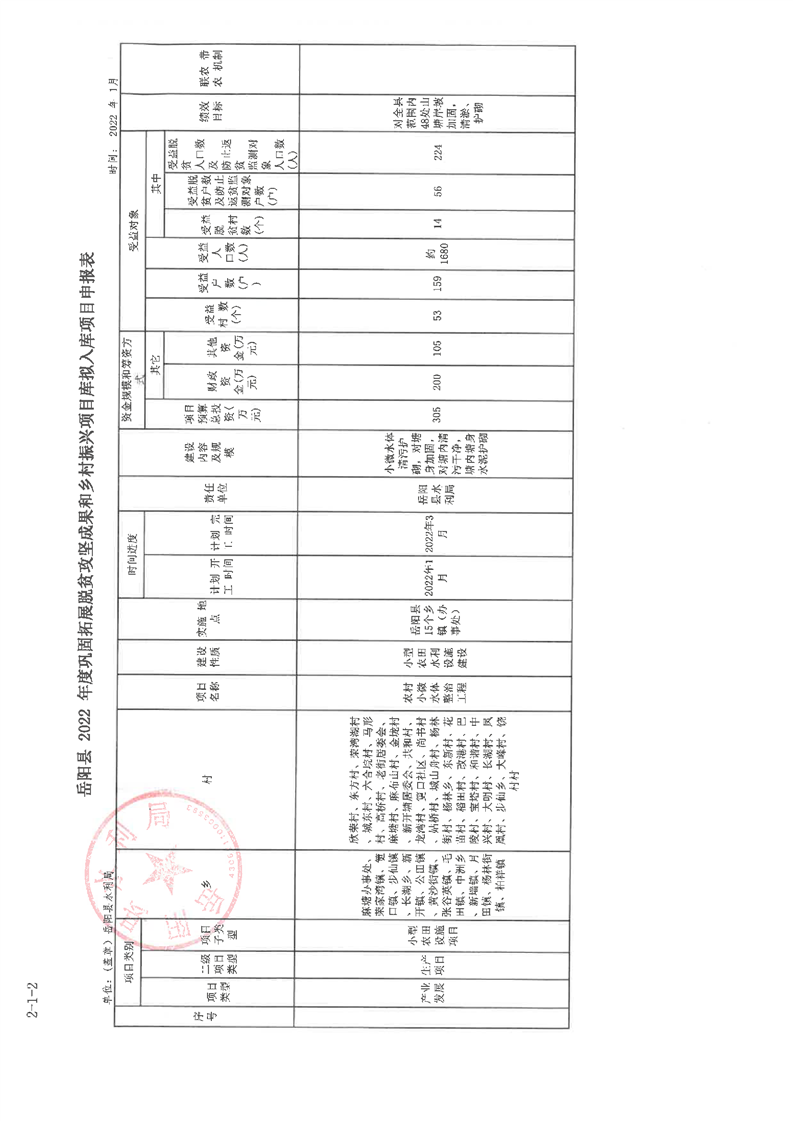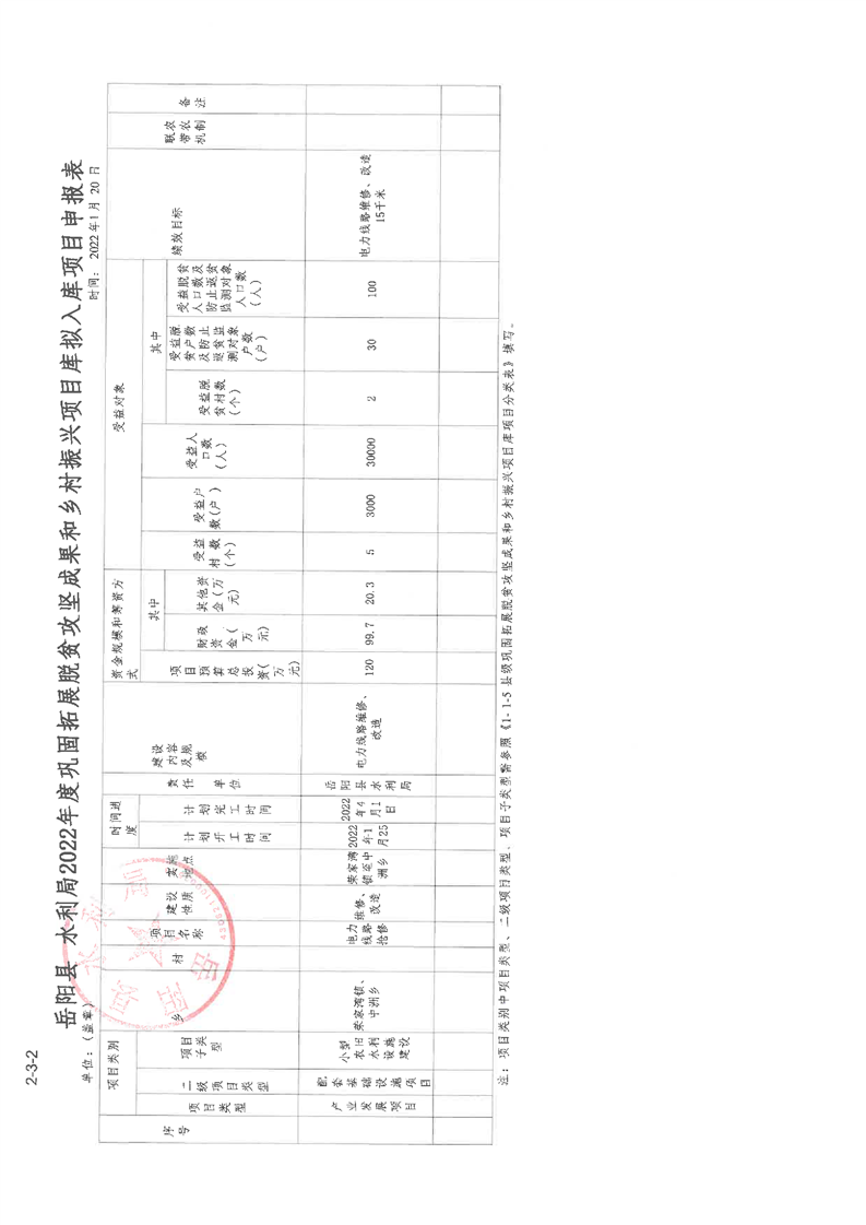 岳阳县水利局2022年乡村振兴衔接资金项目入库申报表及绩效目标申报表