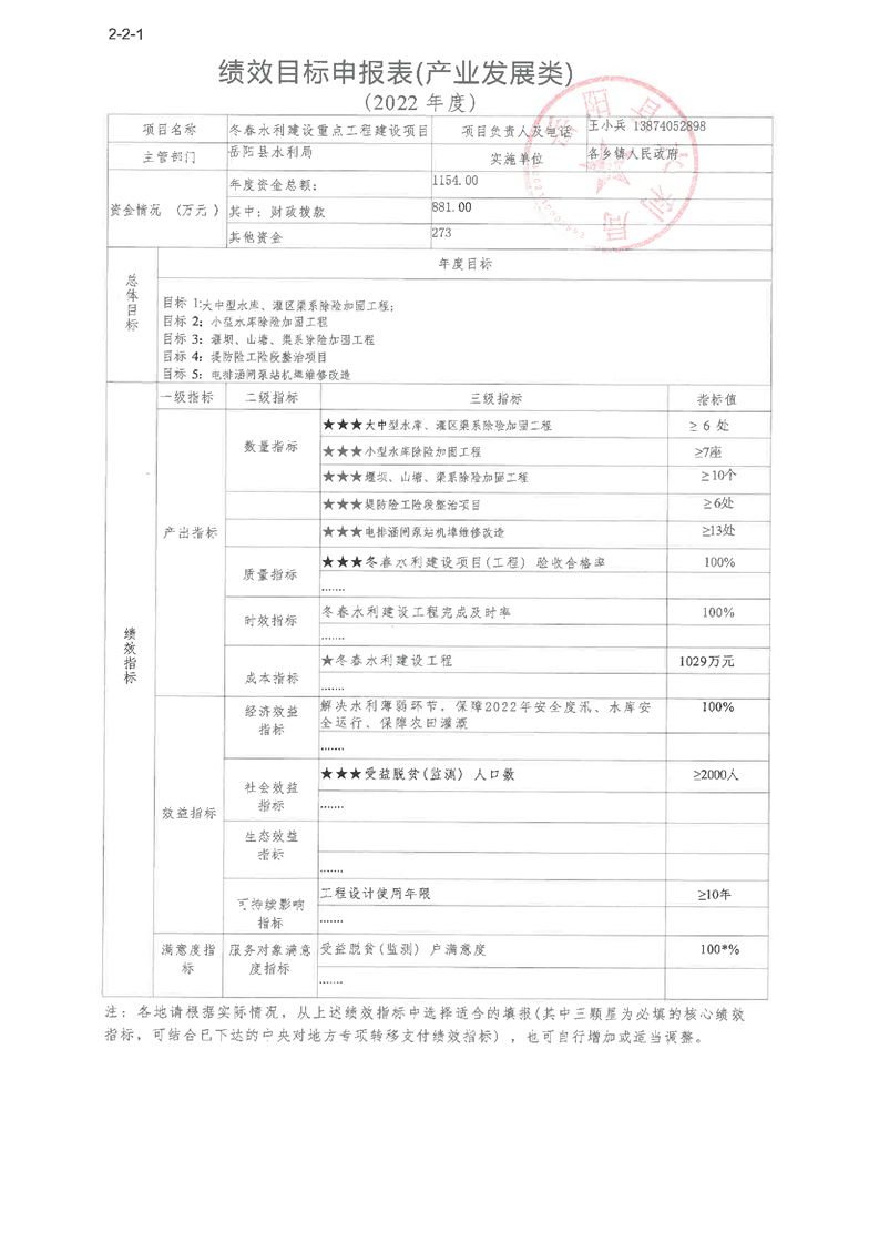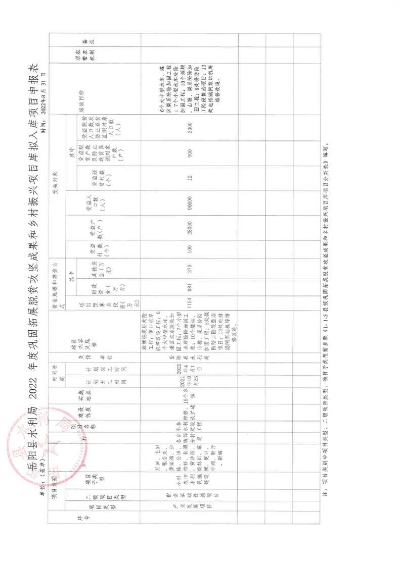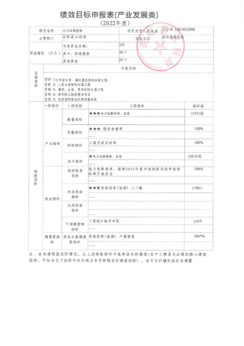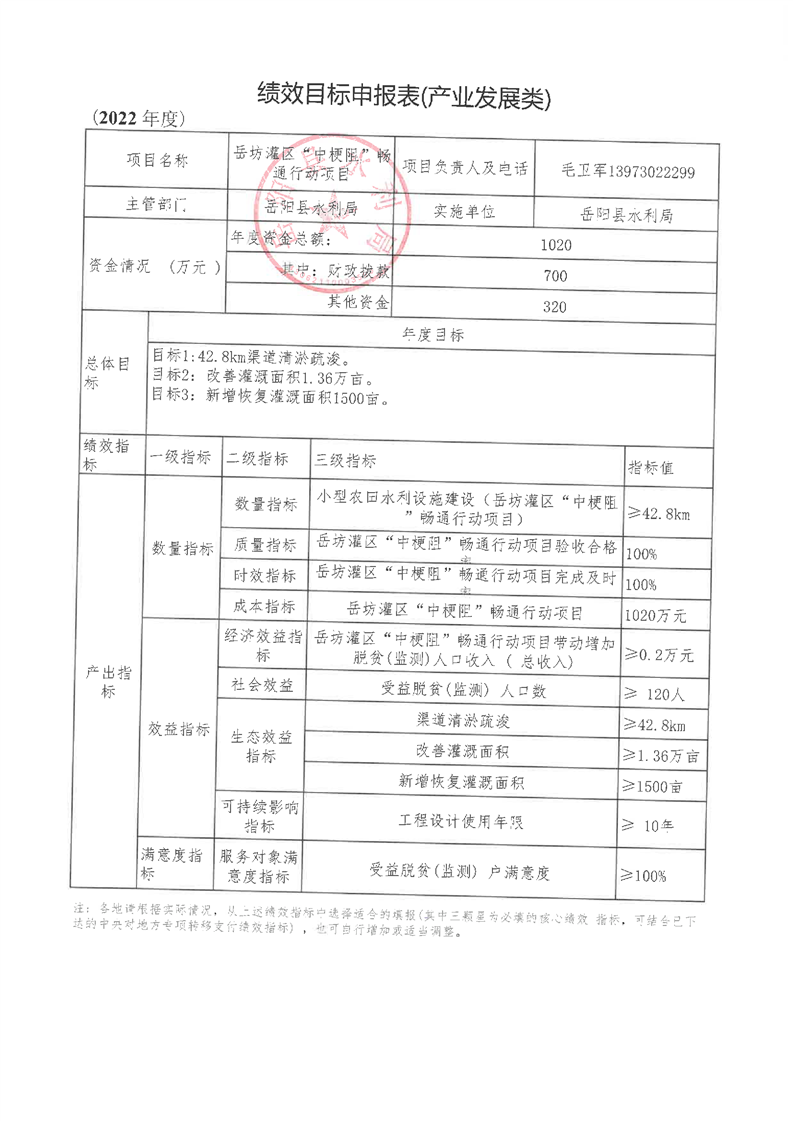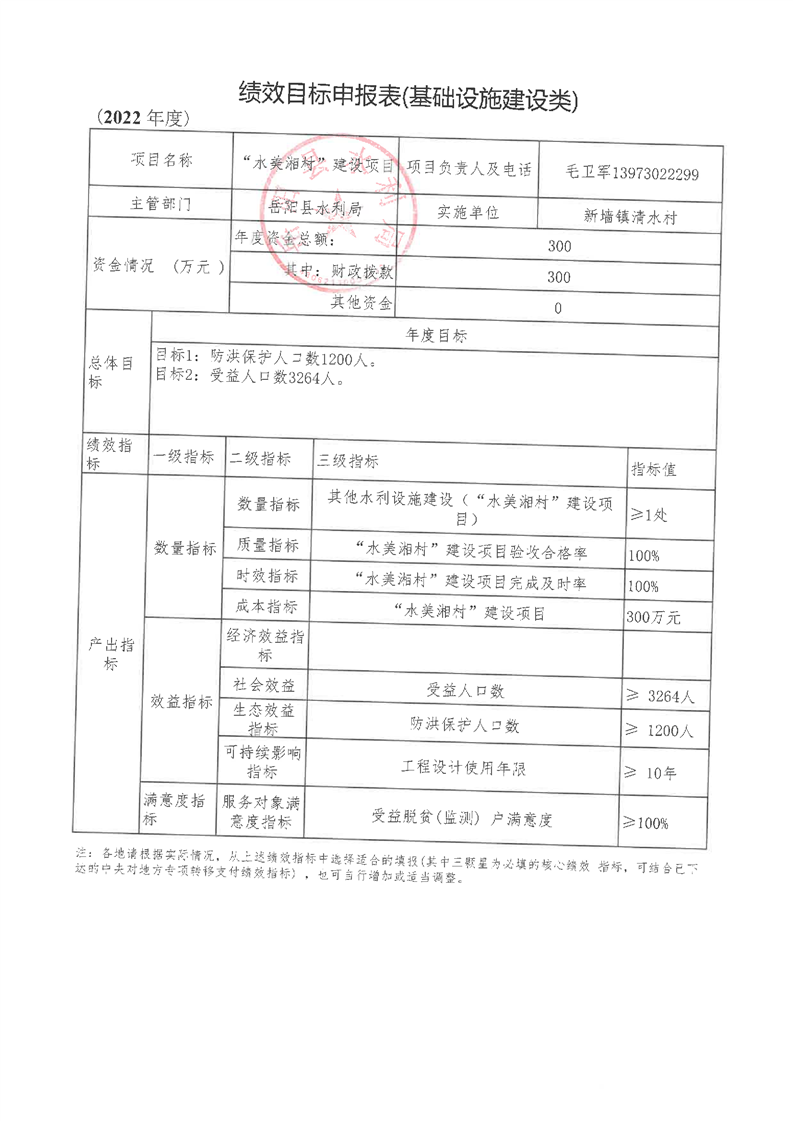 岳阳县水利局2022年乡村振兴衔接资金项目入库申报表及绩效目标申报表