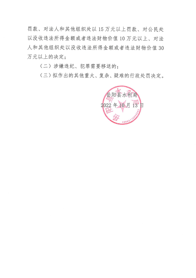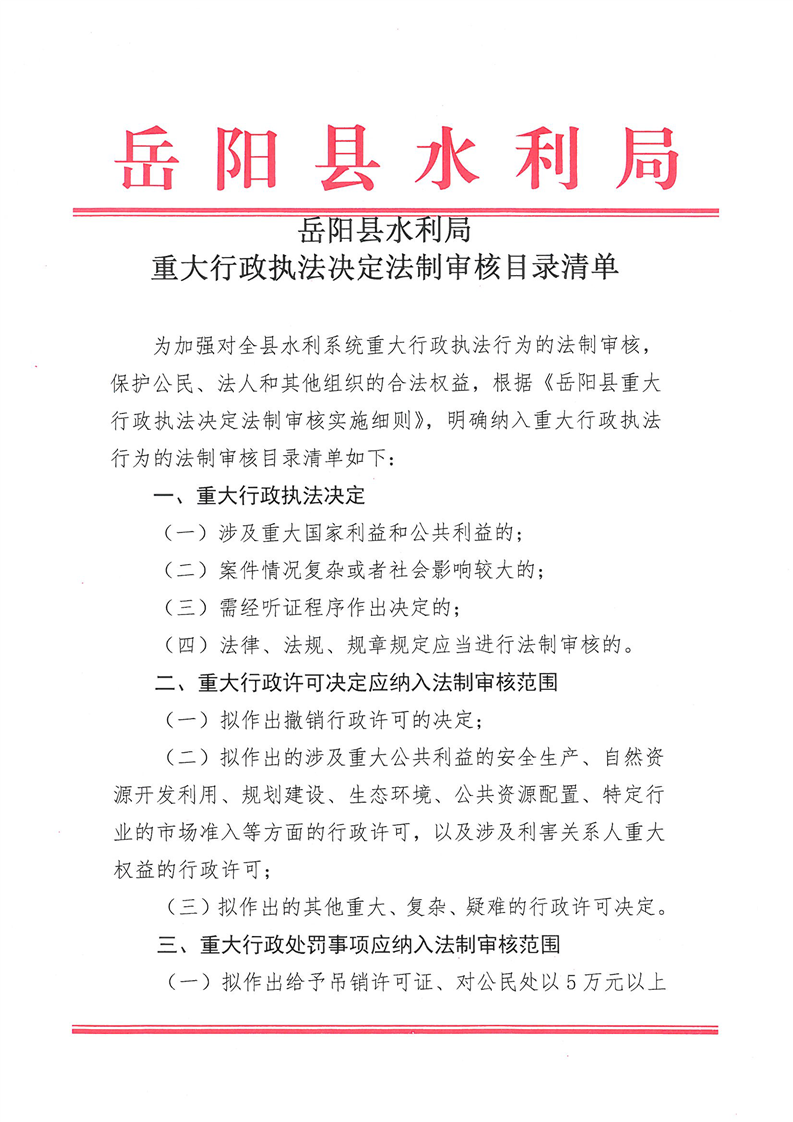 岳阳县水利局重大行政执法决定法制审核目录清单