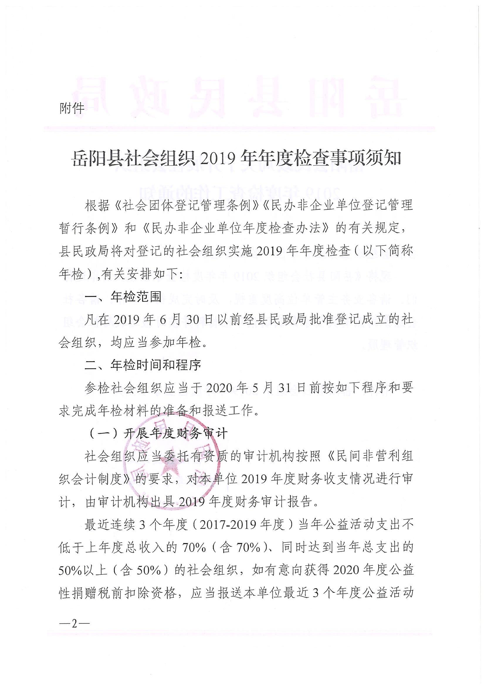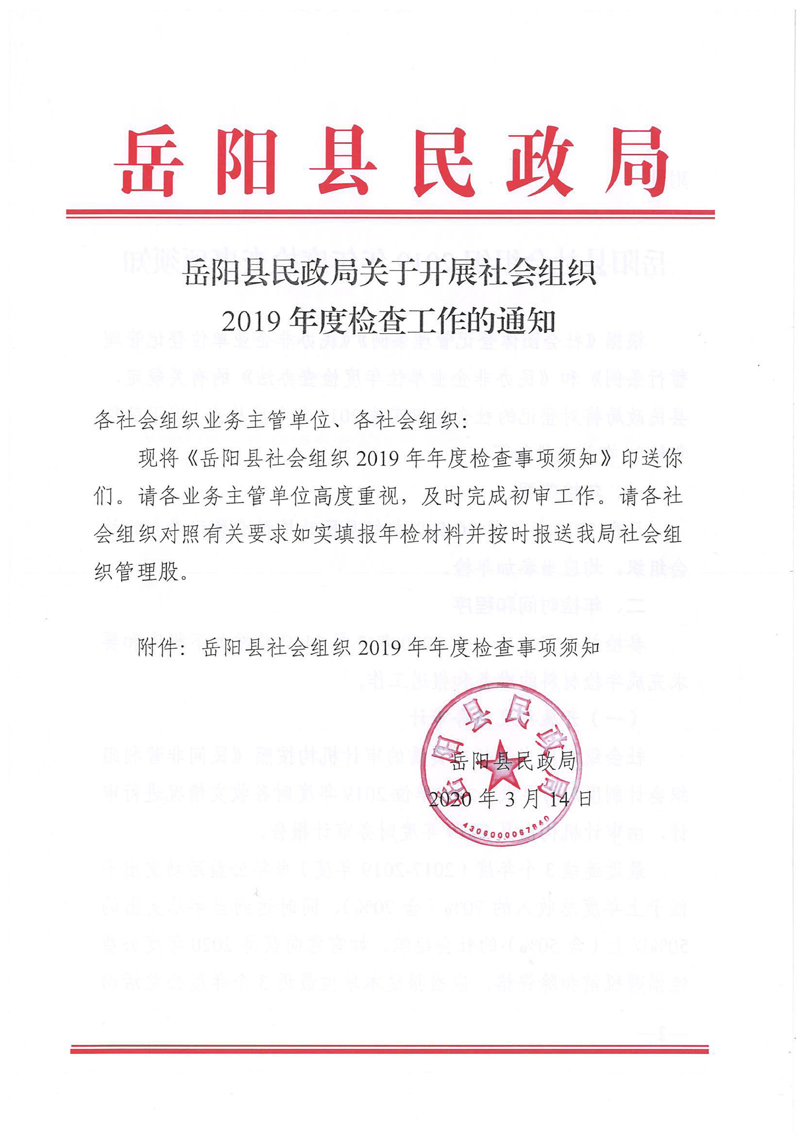 岳阳县民政局关于开展社会组织2019年度检查工作的通知