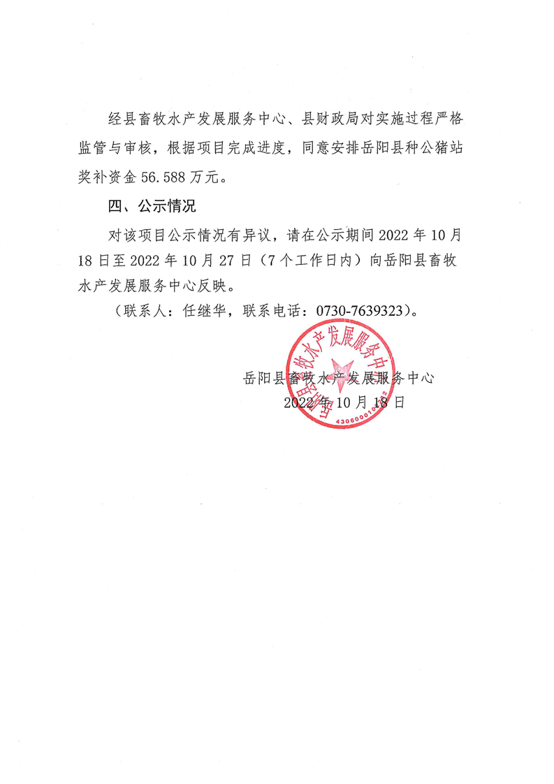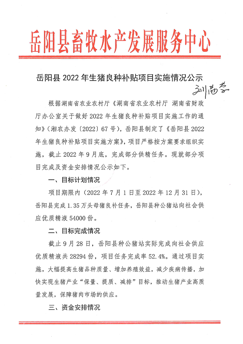 岳阳县2022年生猪良种补贴项目实施情况公示