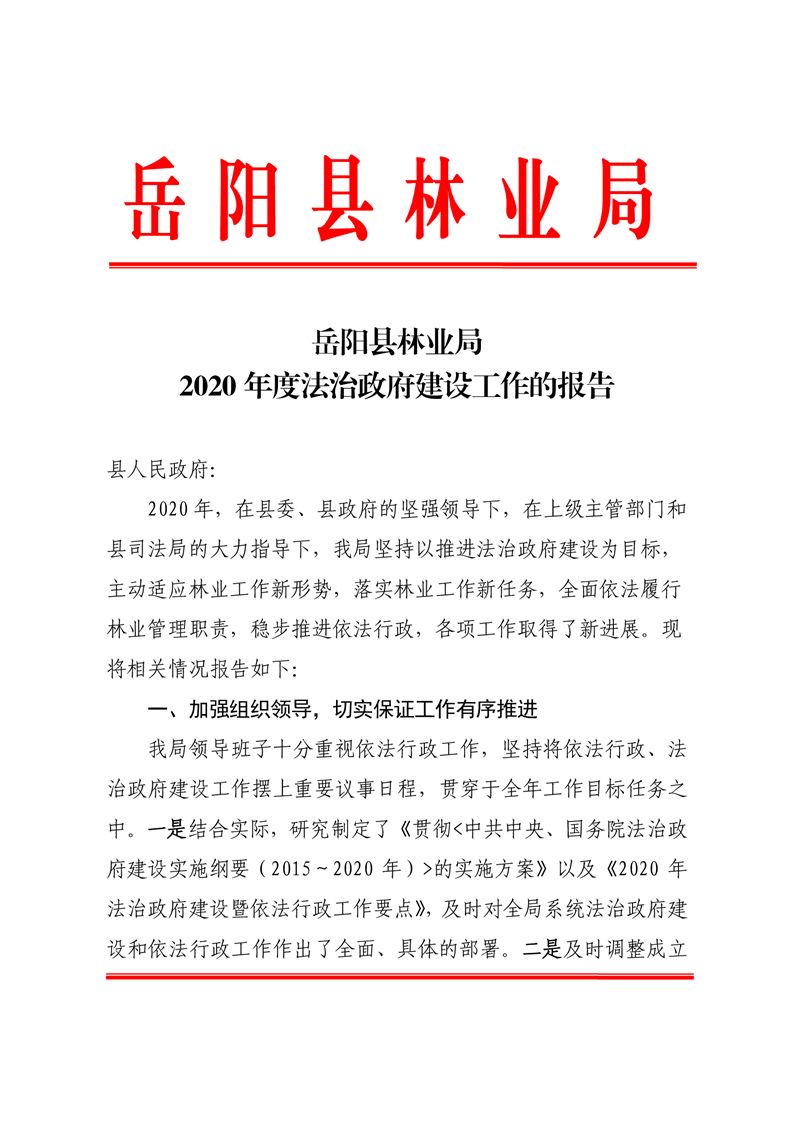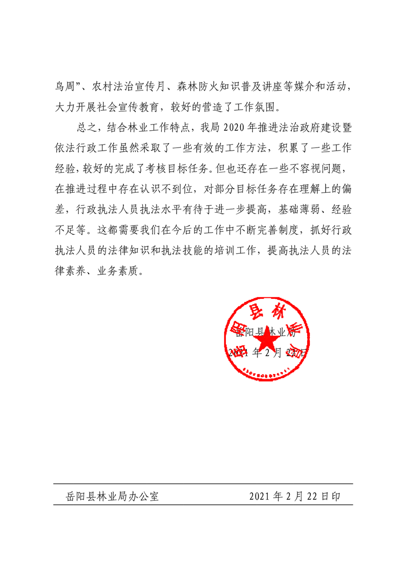 岳阳县林业局2020年度法治政府建设工作报告