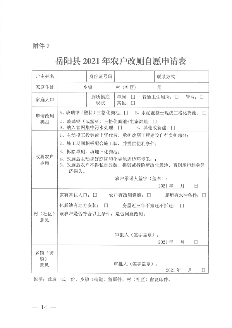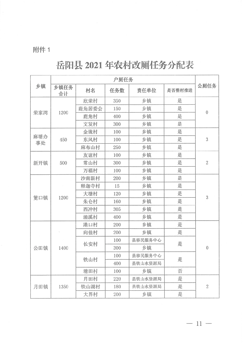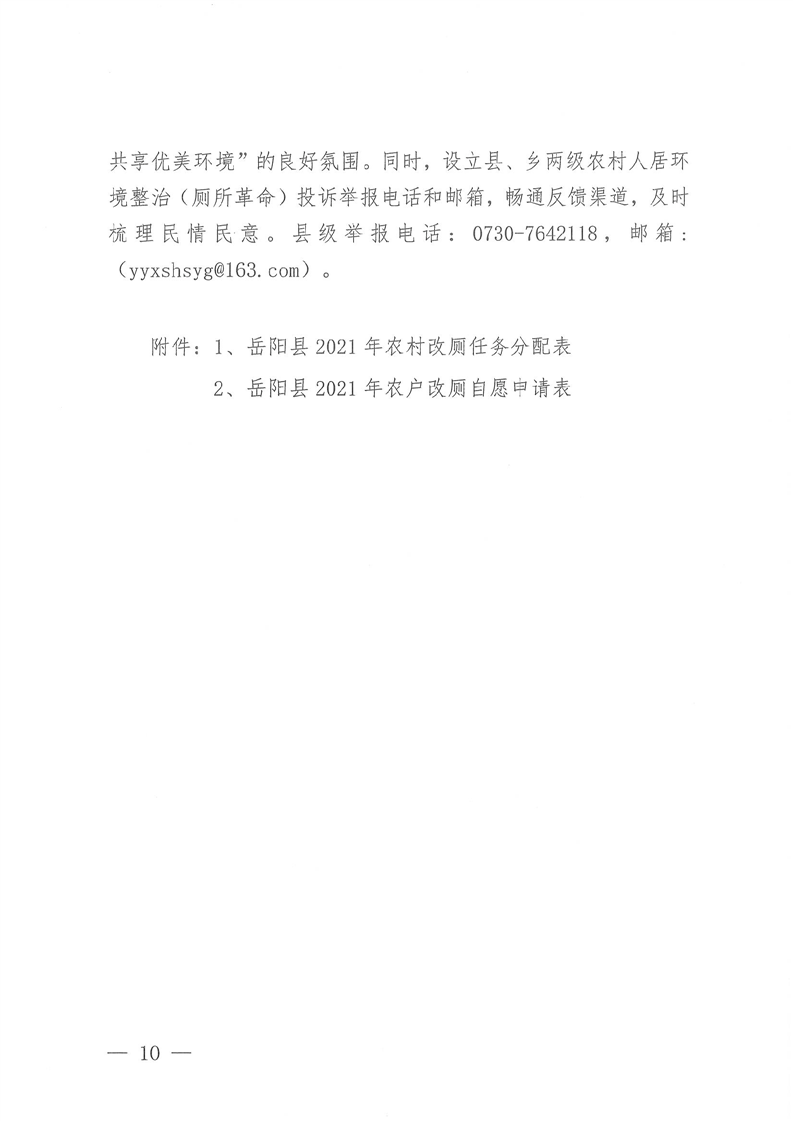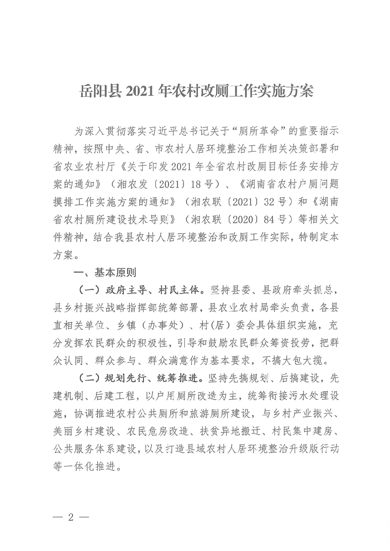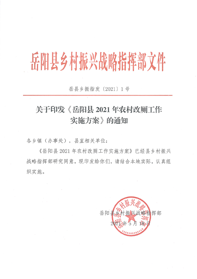 关于印发《岳阳县2021年农村改厕工作实施方案》的通知