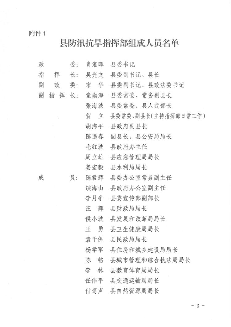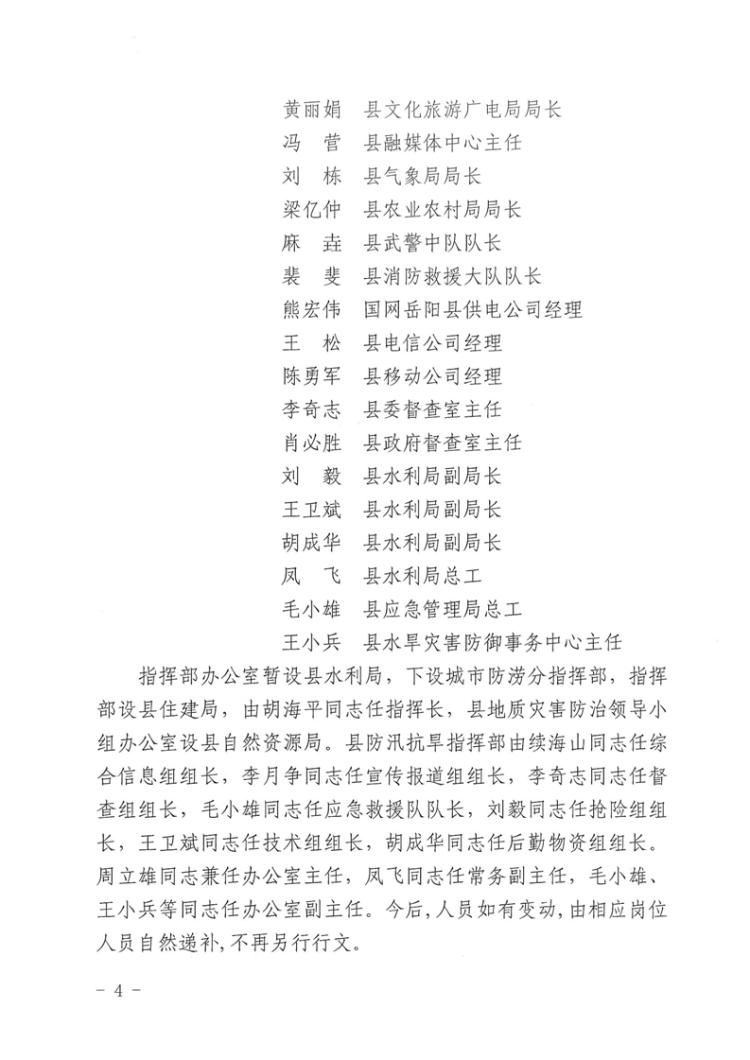 关于调整县防汛抗旱指挥部成员和防汛责任人员的通知