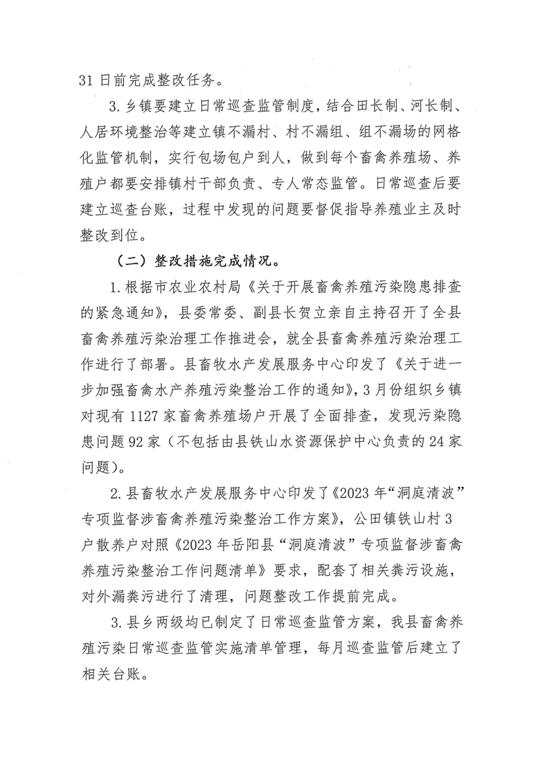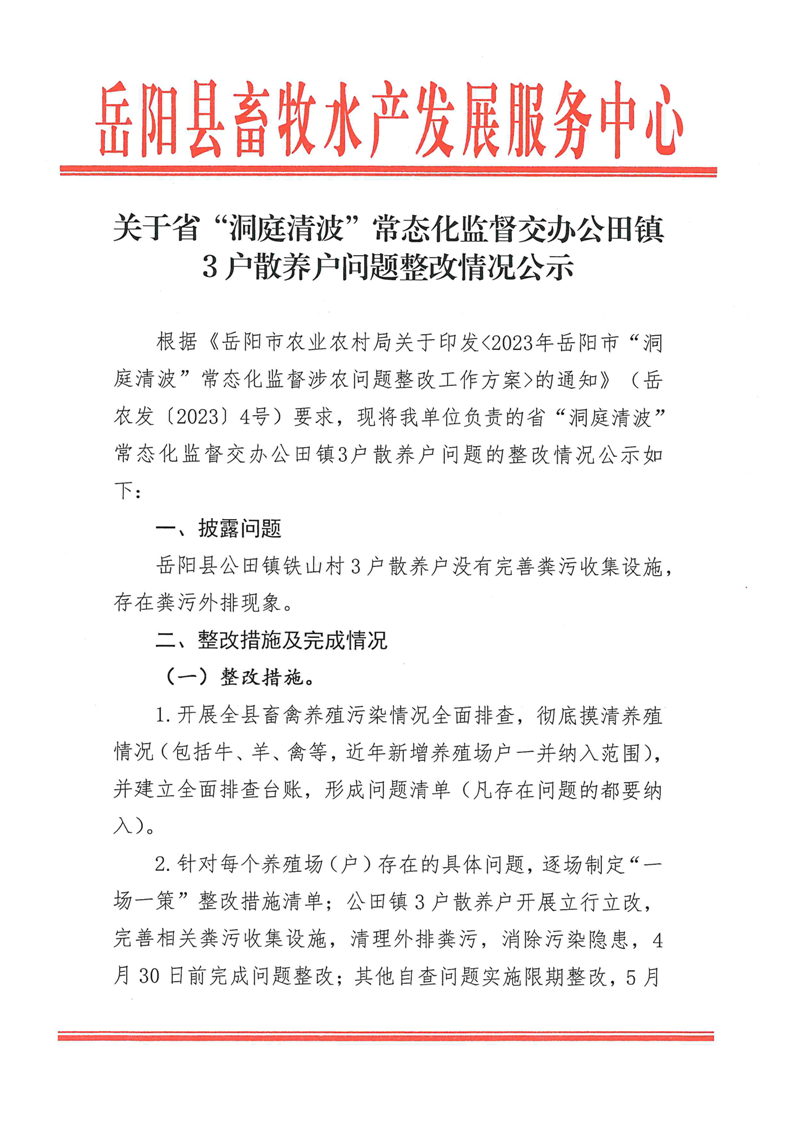 关于省“洞庭清波”常态化监督交办公田镇3户散养户问题整改情况公示