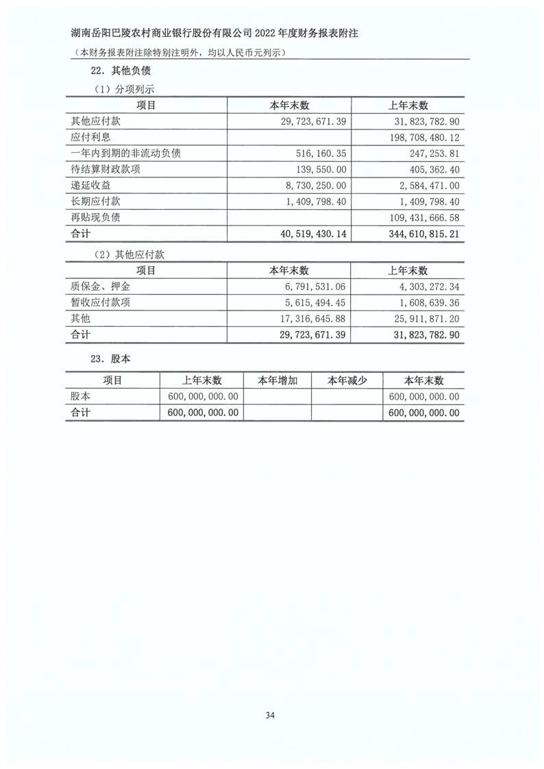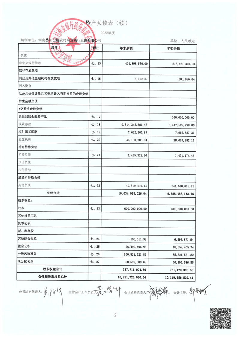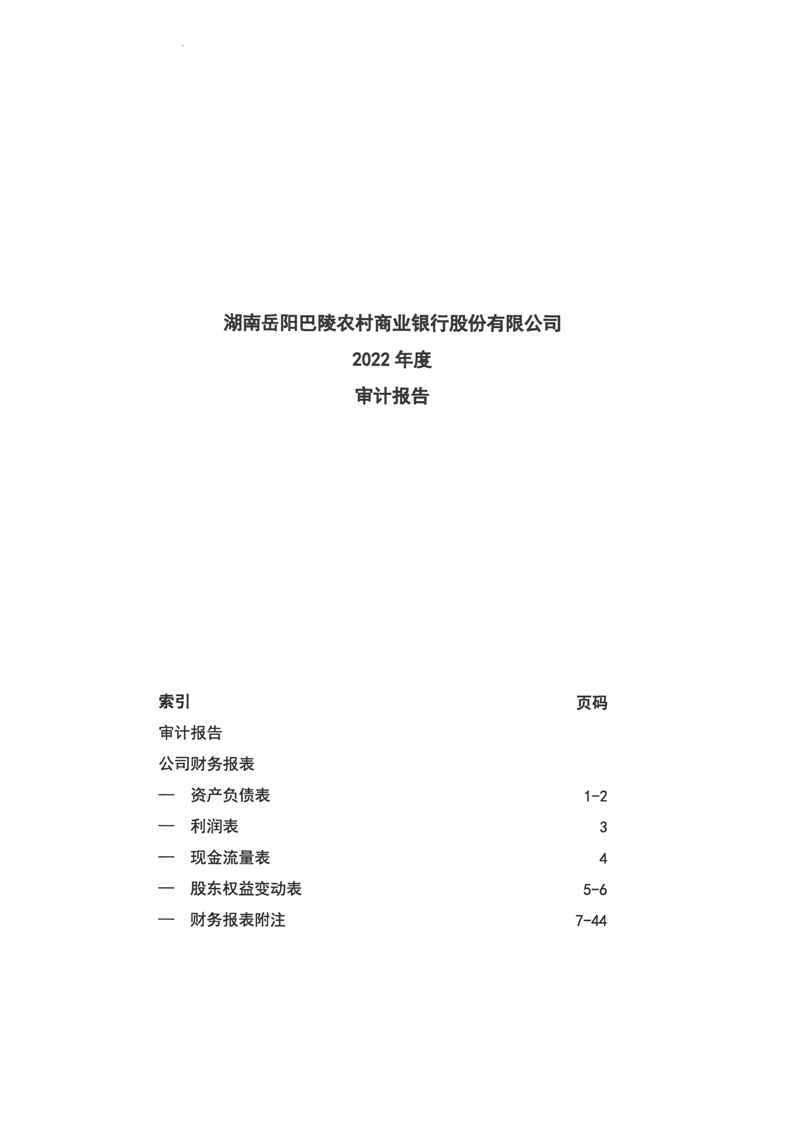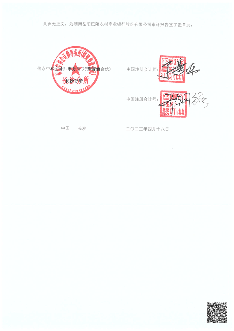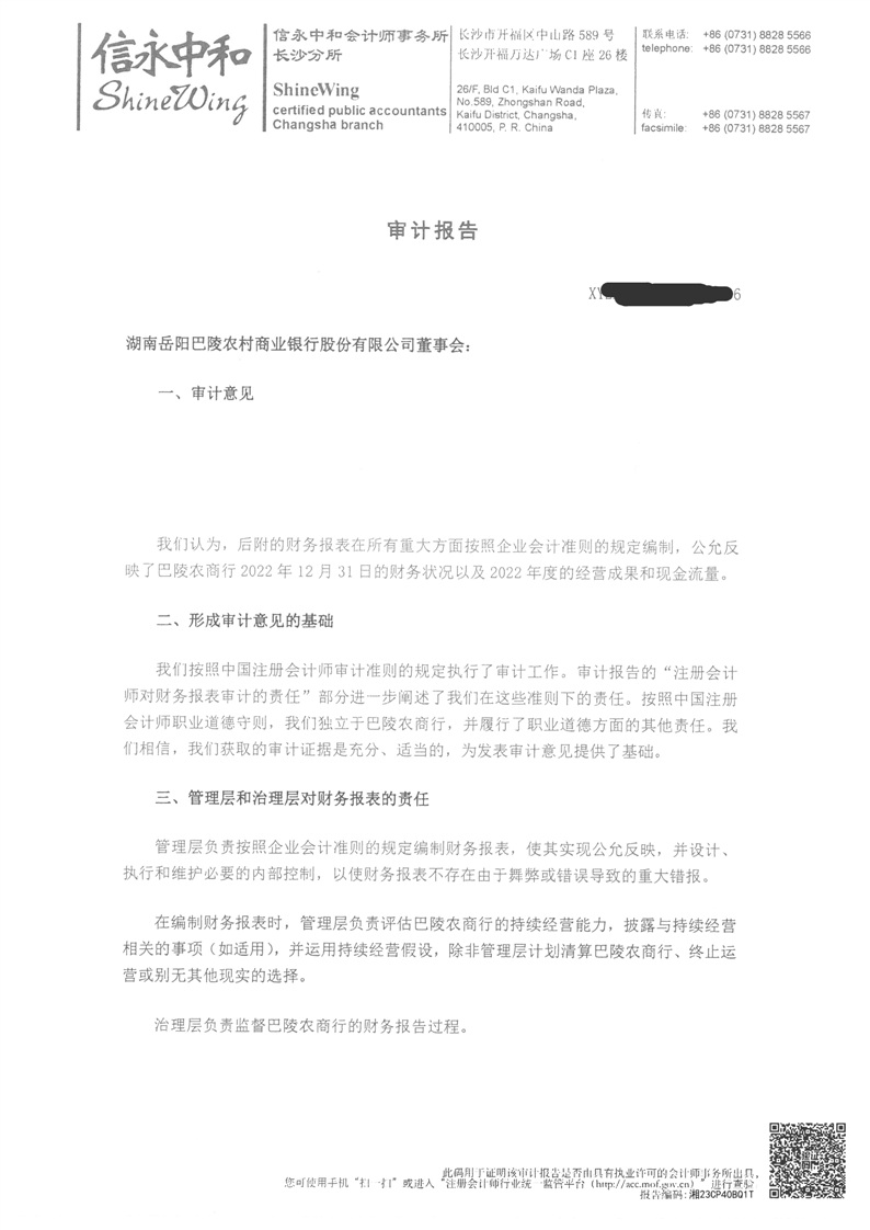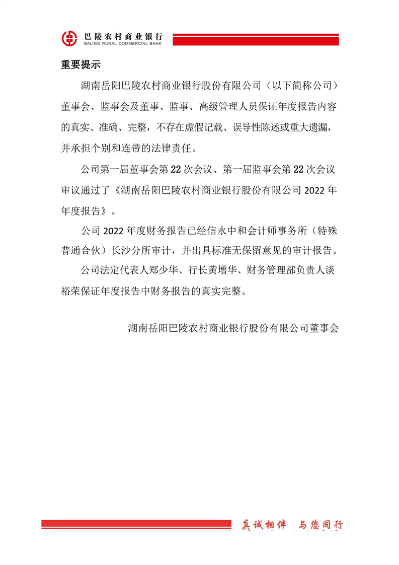 巴陵农商银行2022年年度报告