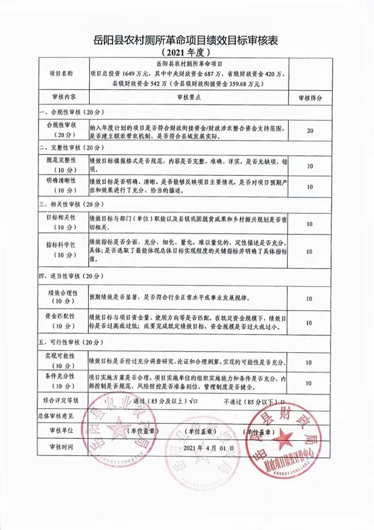 农村厕所革命项目绩效目标审核表