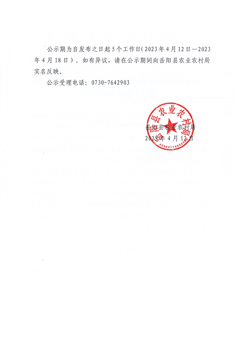 关于拟定岳阳县2023年集中育秧设施建设项目实施主体的公示