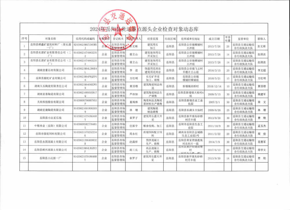 2024年岳阳县货运重点源头企业检查对象动态库.xlsx