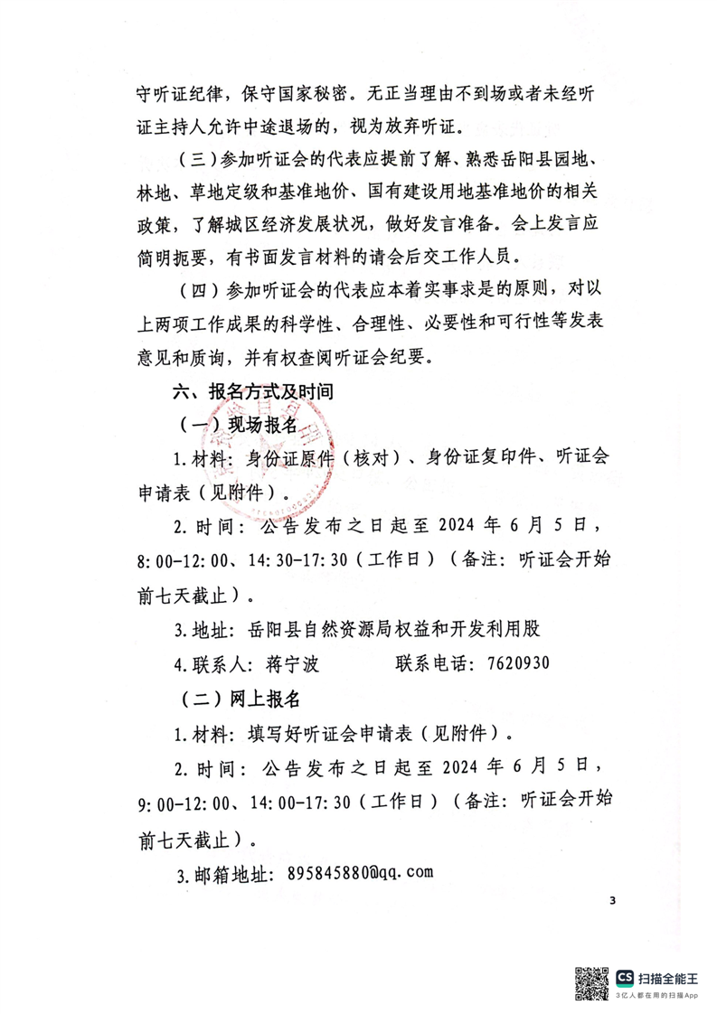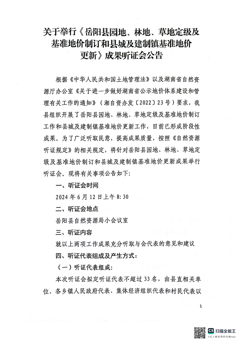 关于举行《岳阳县园地、林地、草地定级及基准地价制订和县城及建制镇基准地价更新》成果听证会公告