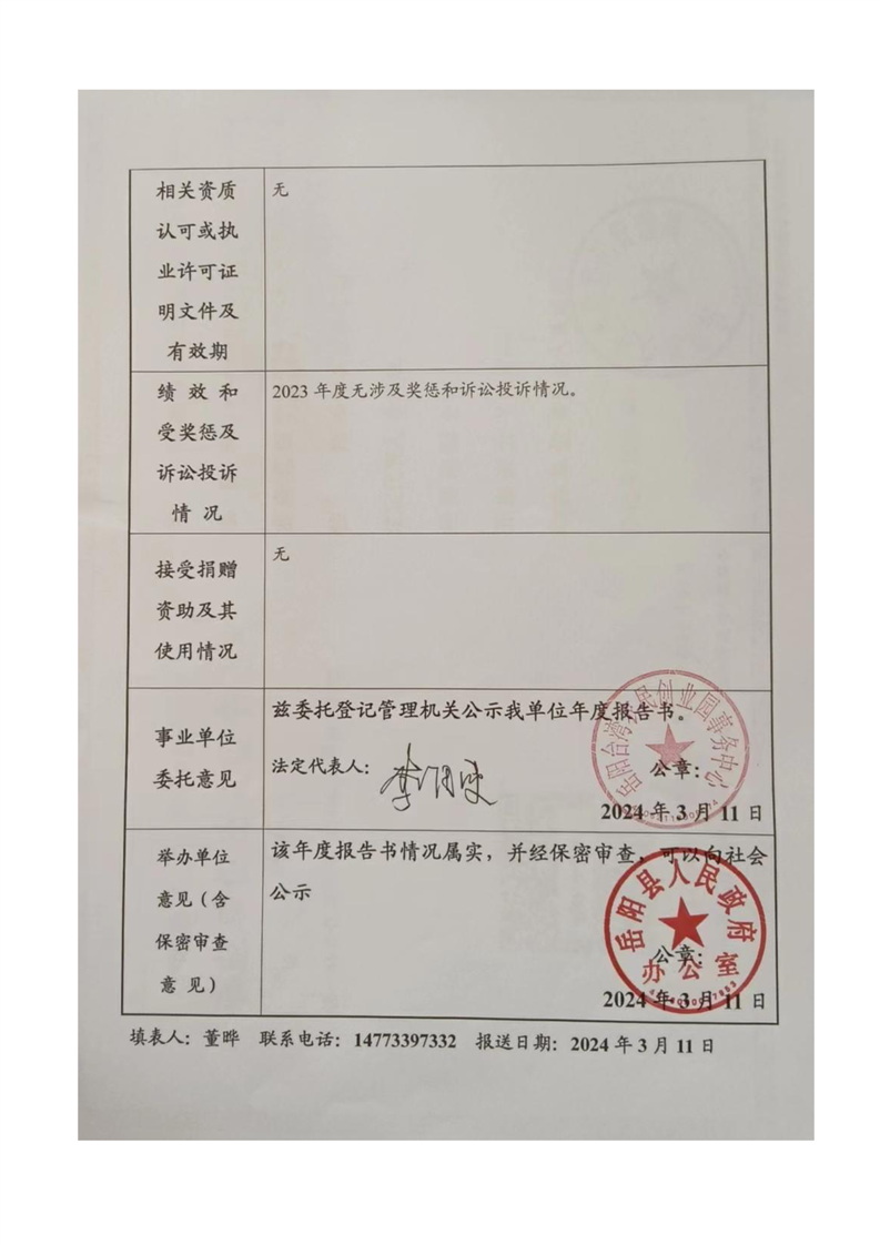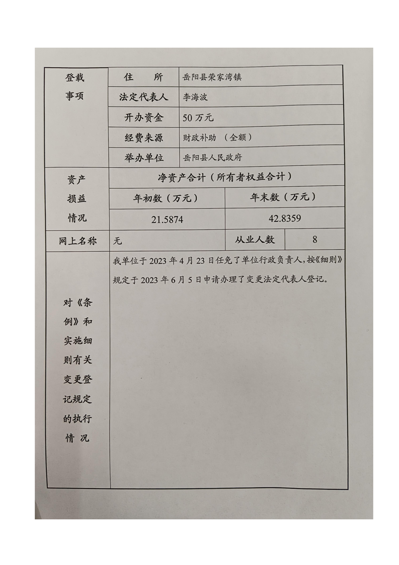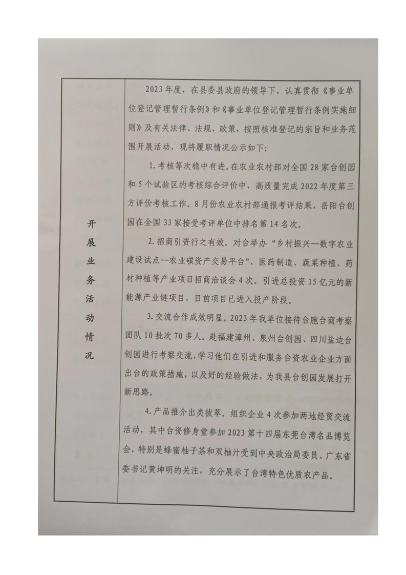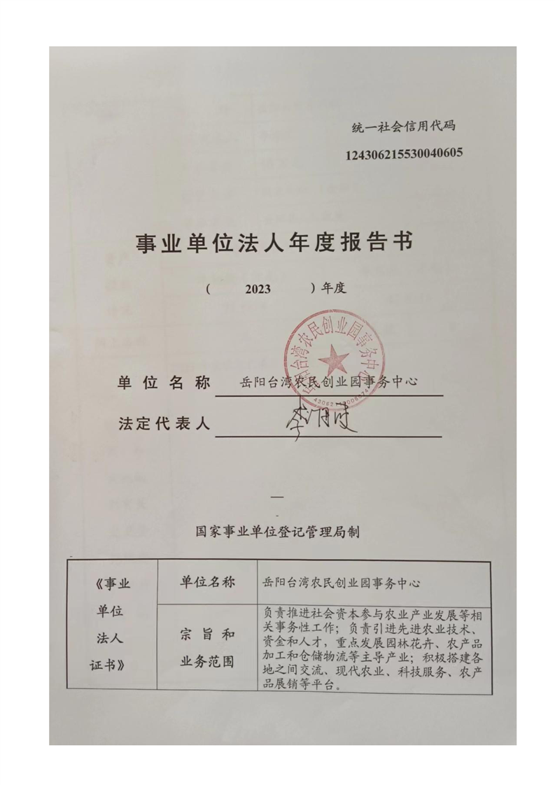 岳阳台湾农民创业园事务中心2023年度事业单位法人年度报告书