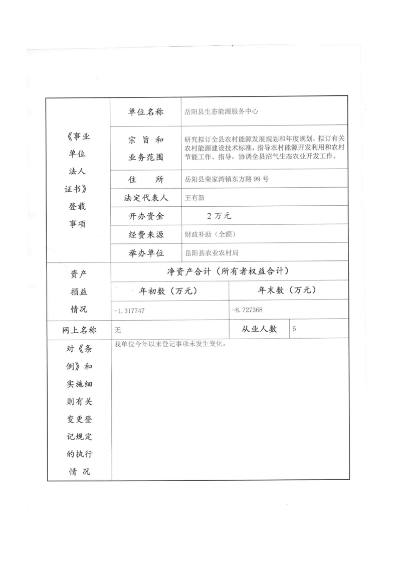 岳阳县生态能源服务中心法人年度报告书