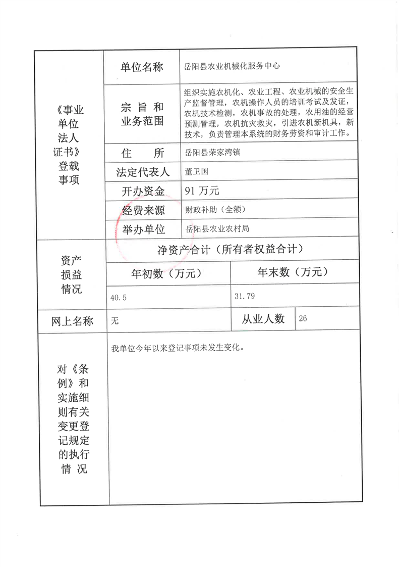 岳阳县农业机械化服务中心法人年度报告书